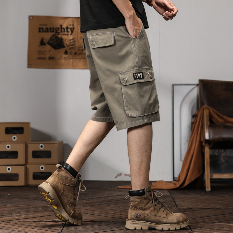 新款夏季薄款工装休闲短裤男宽松大码多口袋中裤外穿五分裤