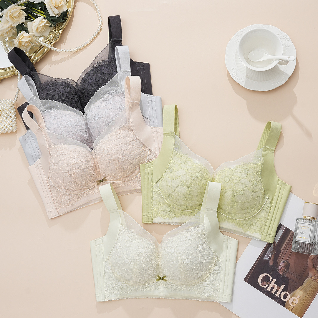 新款内衣女无钢圈调整型性感蕾丝聚拢薄款文胸上托舒适收副乳胸罩