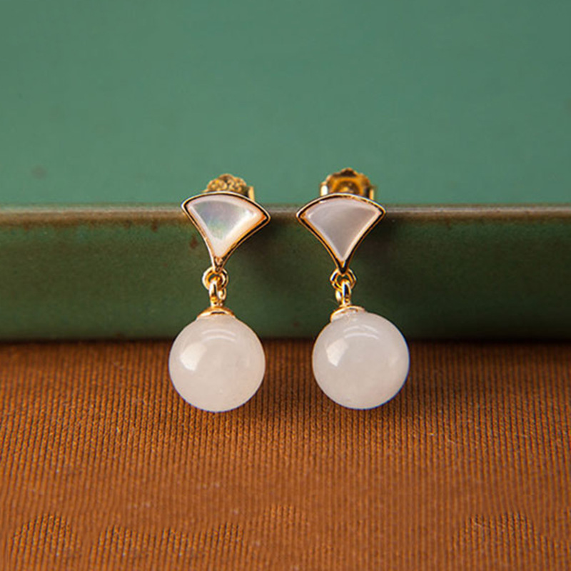 小裙摆天然淡水珍珠耳饰女简约小众耳环银针贝壳耳钉港味复古气质