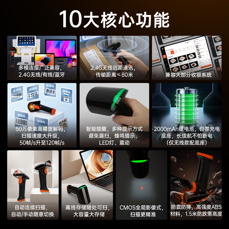 【扫码器】MP50高速款(一二维码+屏幕)商超/收银✅高速扫描