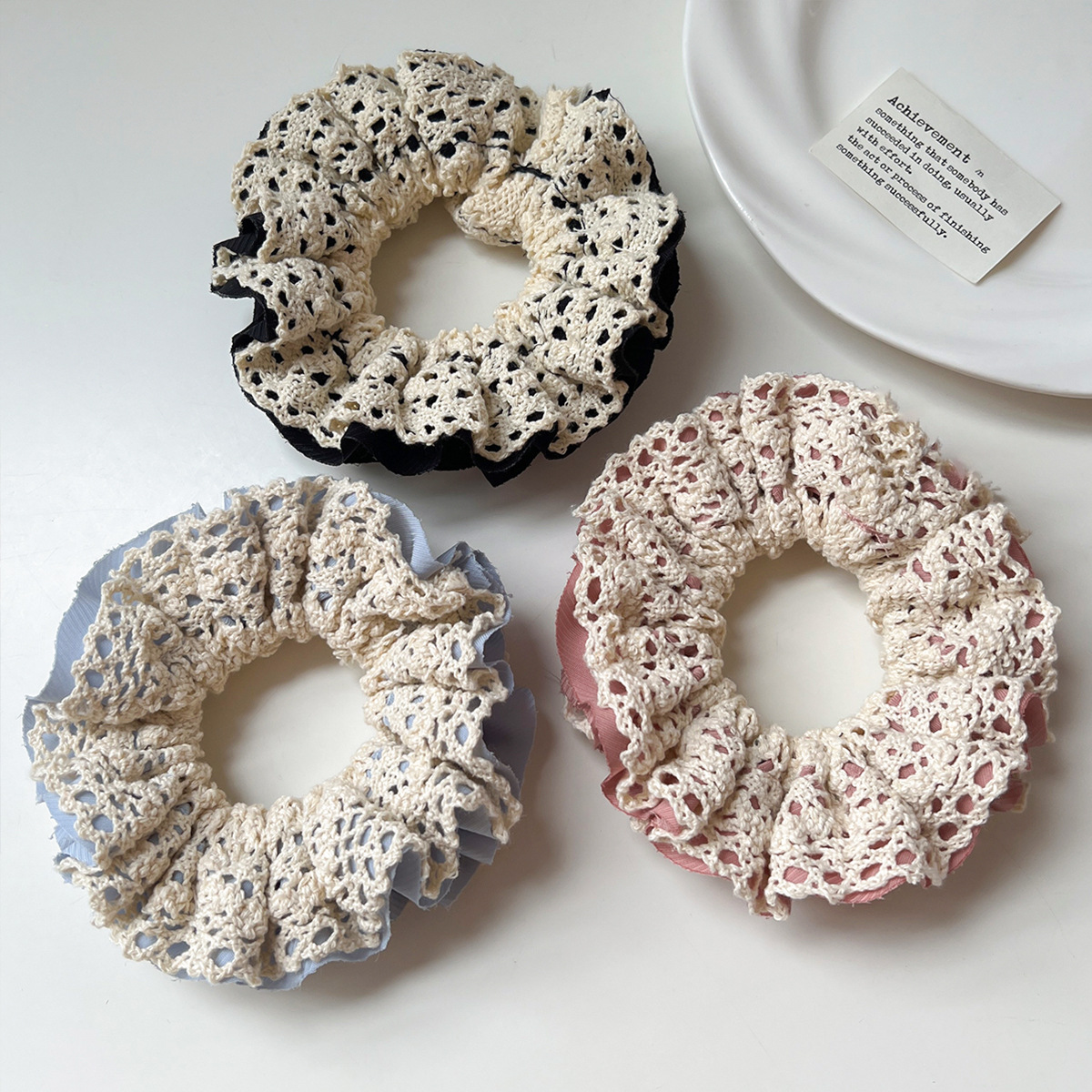 韩版双层蕾丝手工镂空花边发饰头绳女精致高级感气质大肠发圈