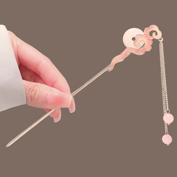 新款簪子女中国风古风祥云透明发钗盘发仿玉发簪步摇流苏