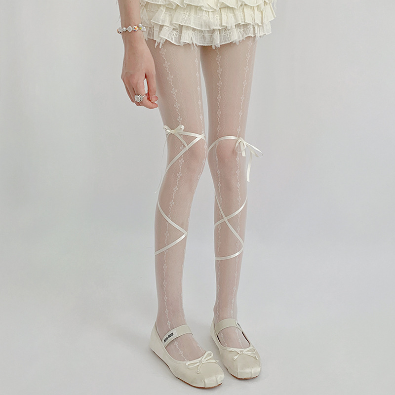 白色丝袜纯欲防勾丝不掉档法式复古绑带白丝jk连裤袜子