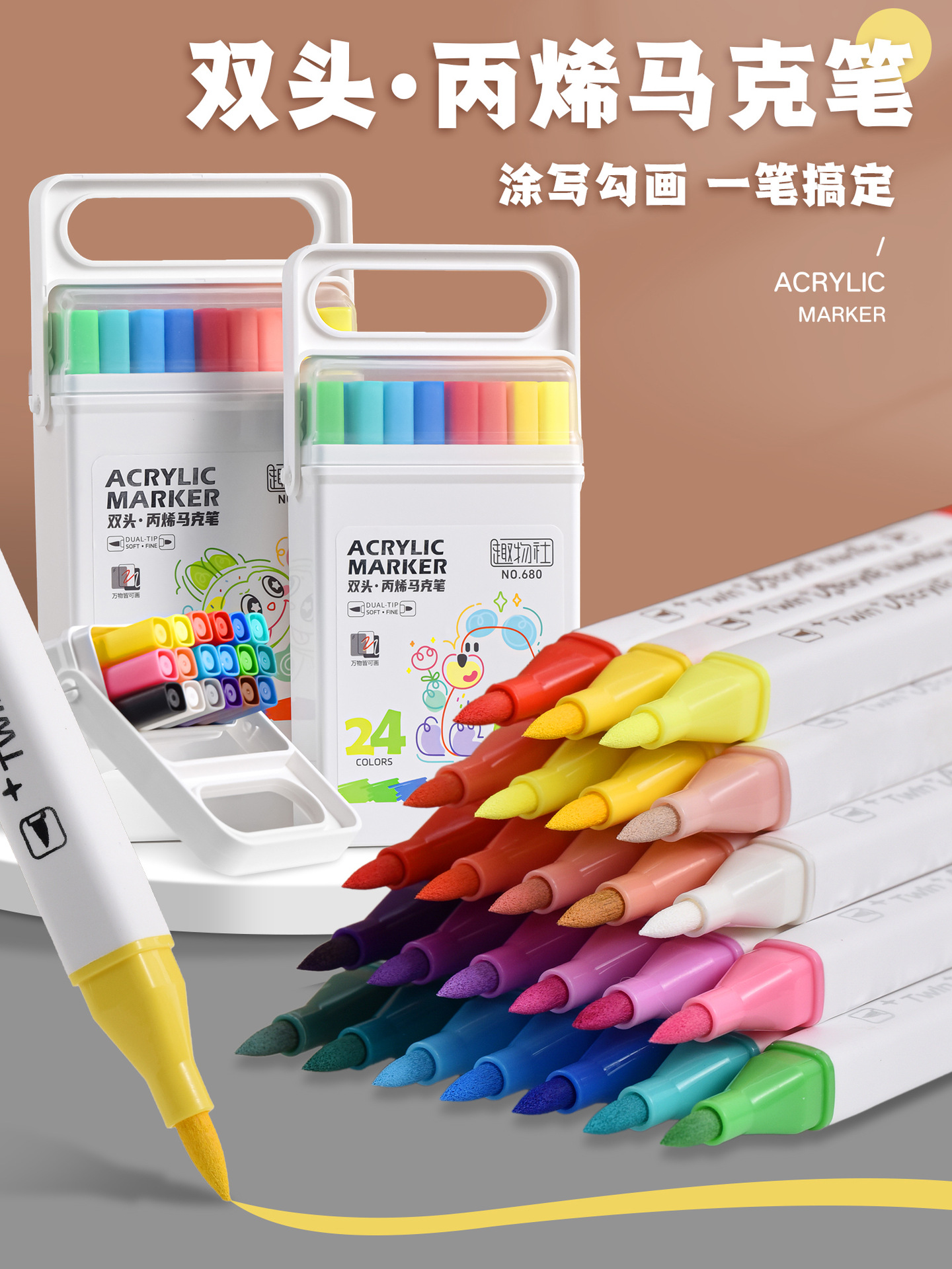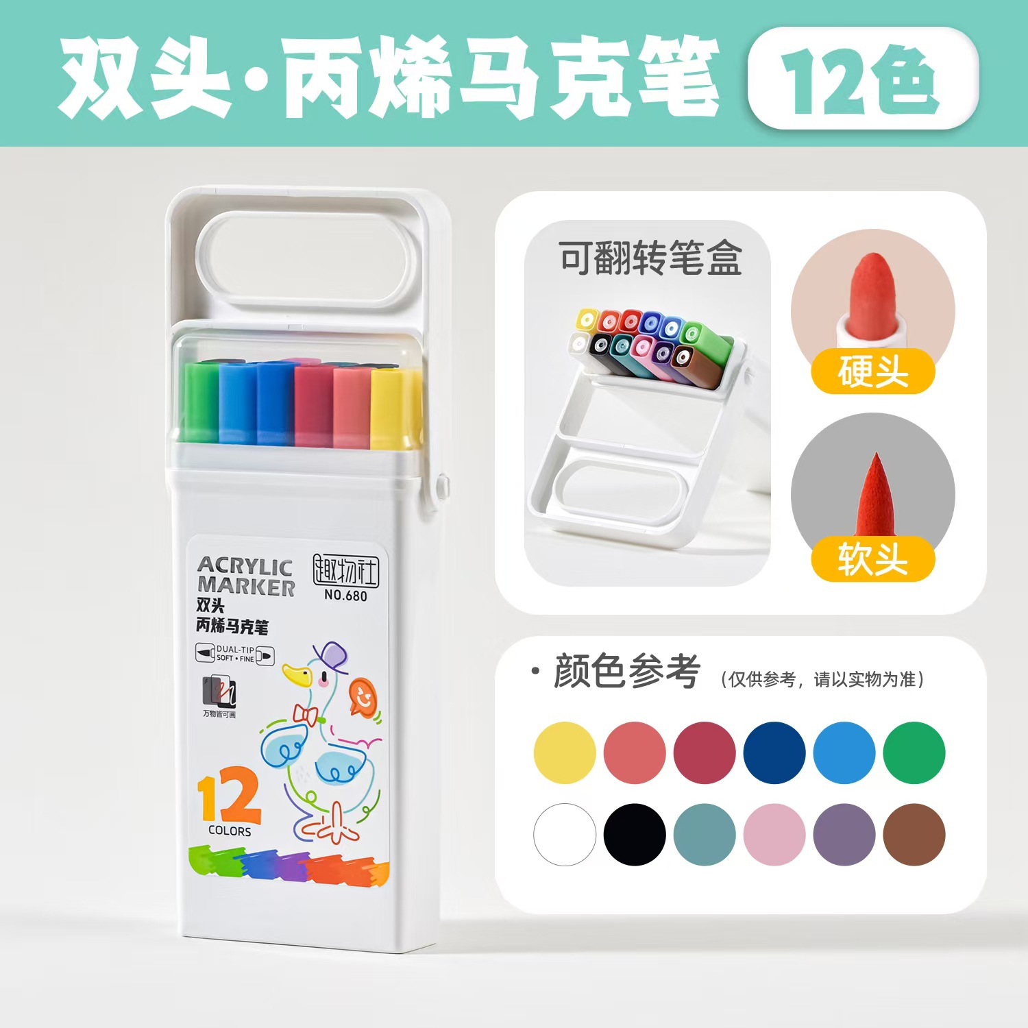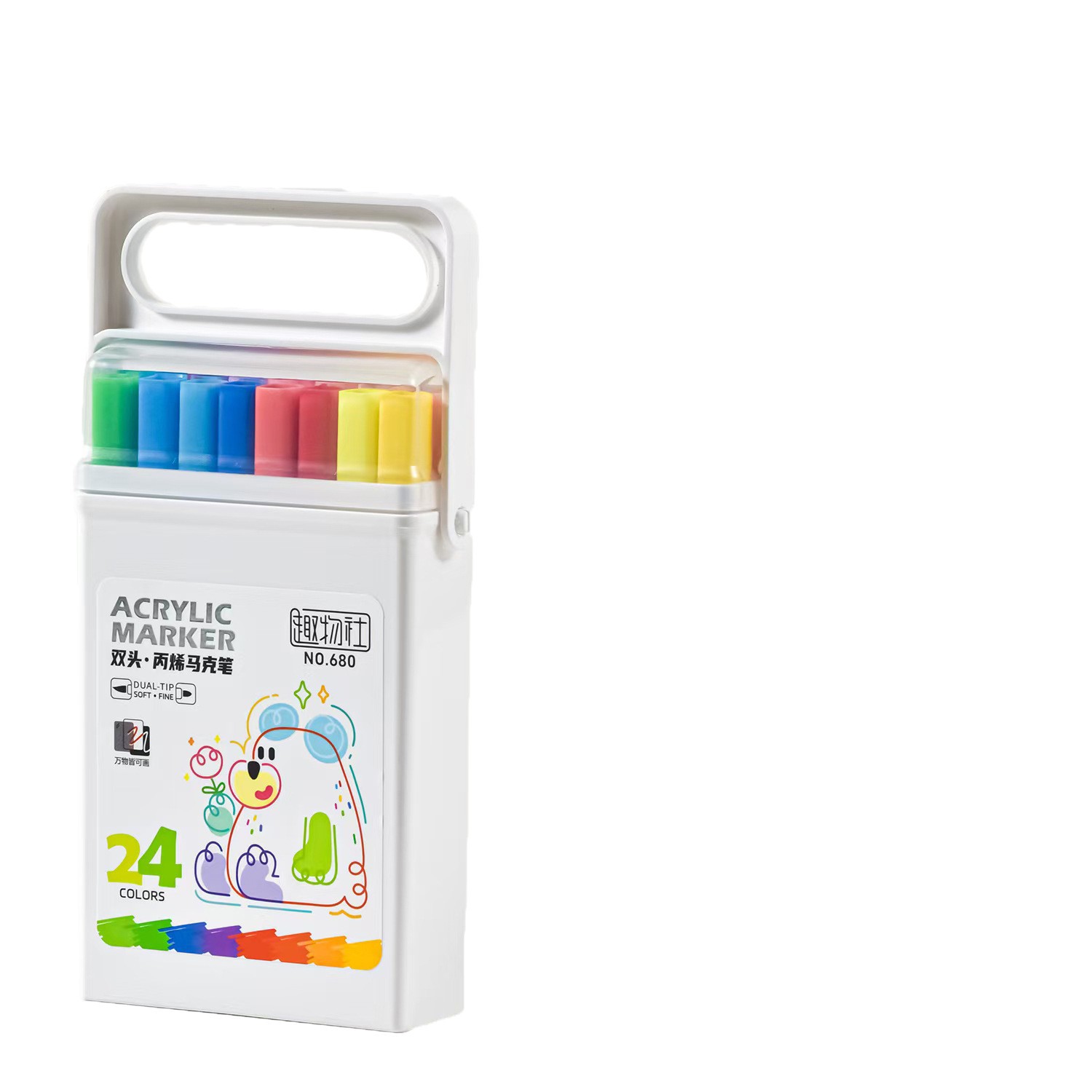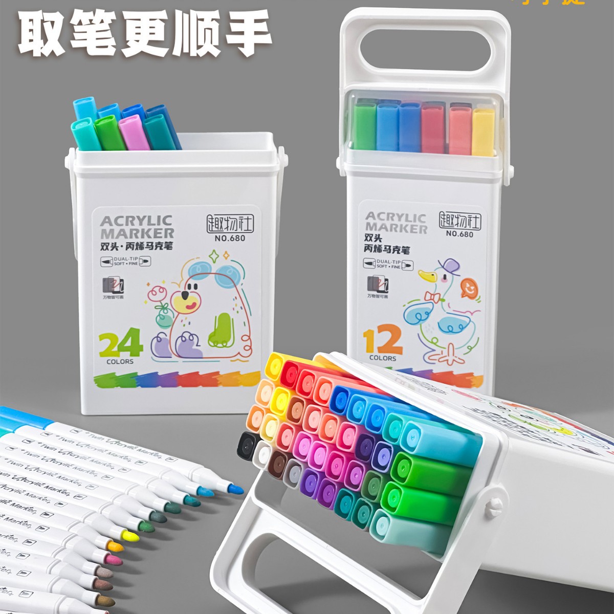 双头方杆丙烯马克笔不透色可叠色手提软头彩色绘画笔套装