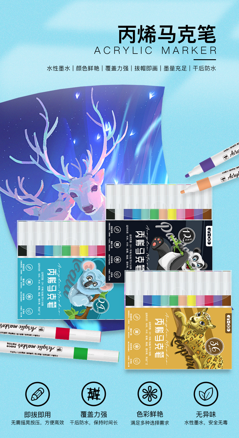 丙烯马克笔不透色可叠色画笔60色套装防水涂鸦笔水性彩笔