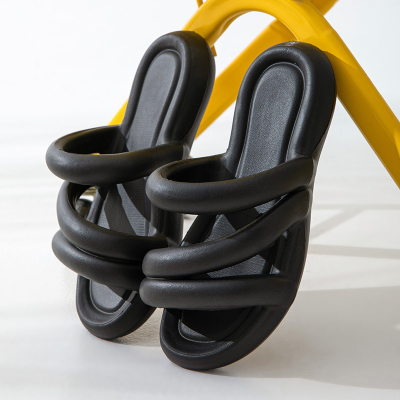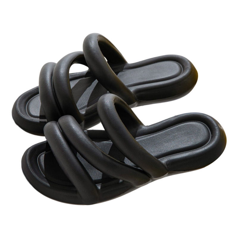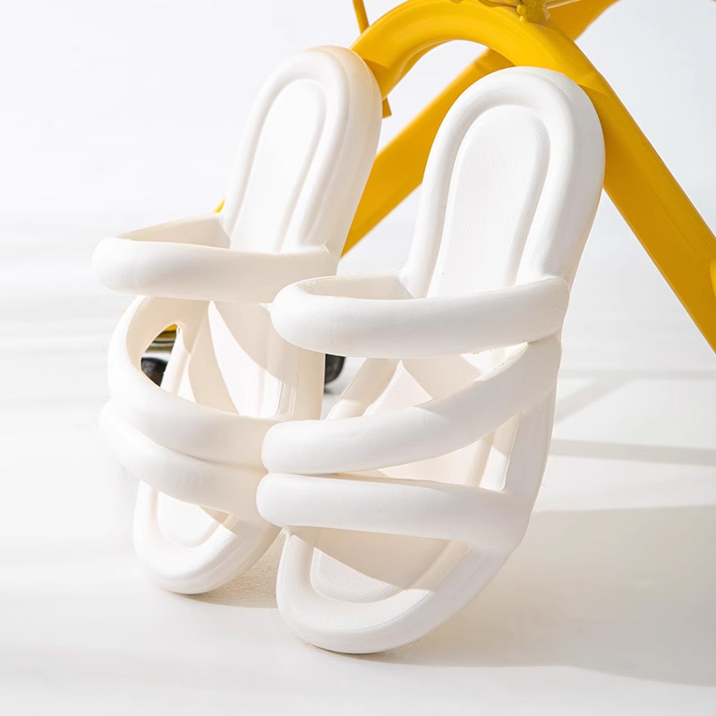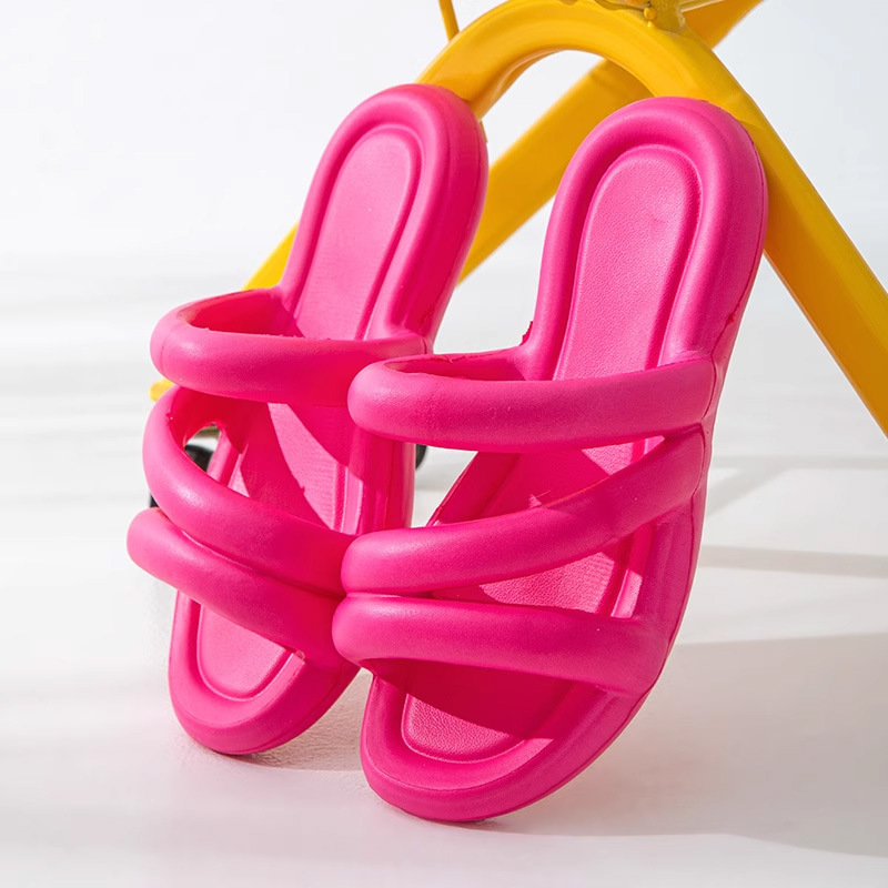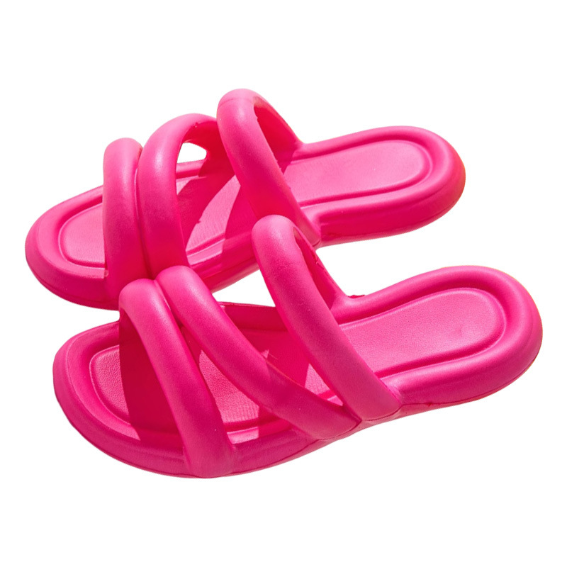新款纯色交叉镂空女款居家凉拖鞋简约舒适潮流踩屎感防滑一字拖鞋