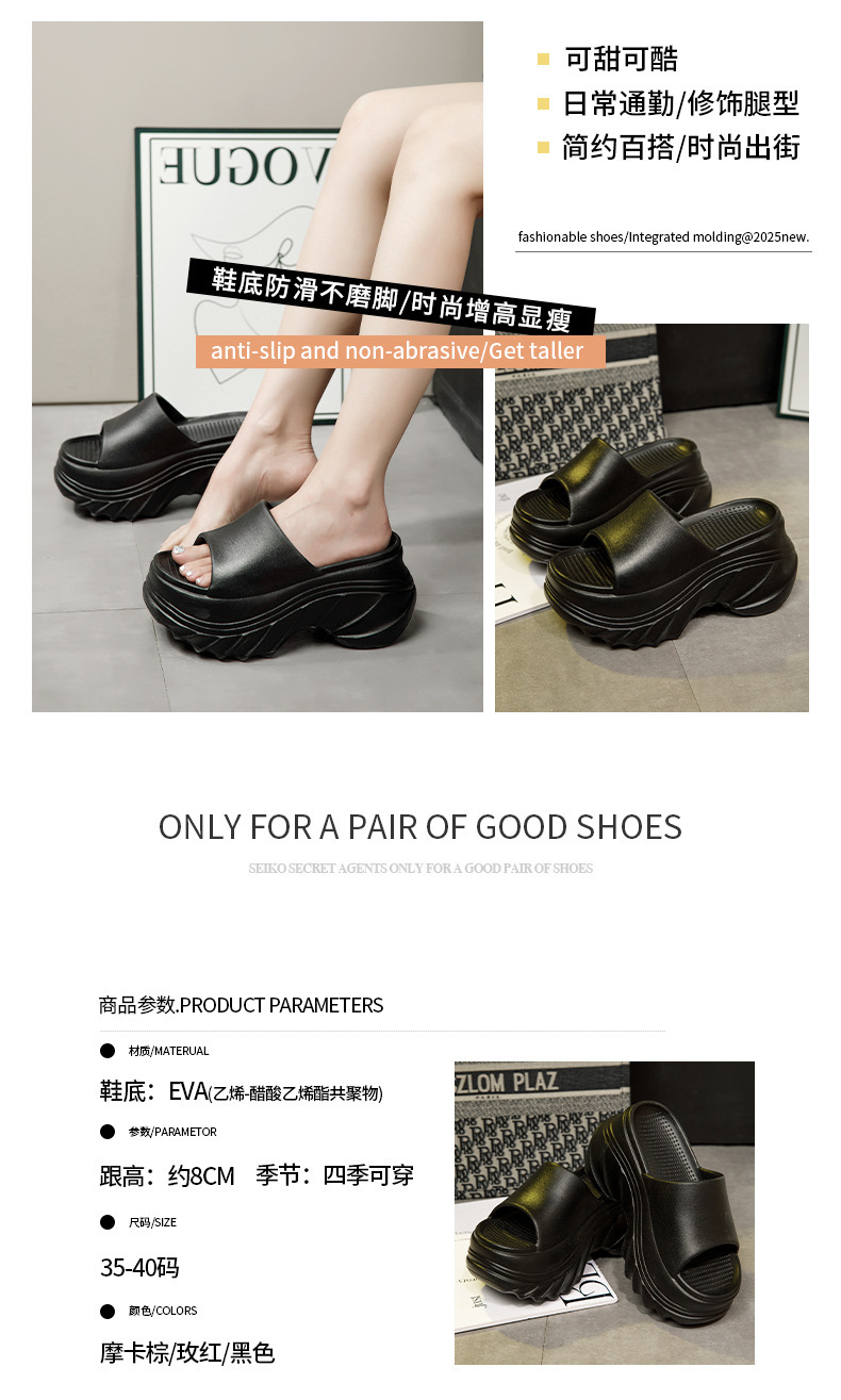 奇丹鞋厂8cm增高厚底凉拖鞋女夏季家居室内软底防滑eva外穿拖鞋女