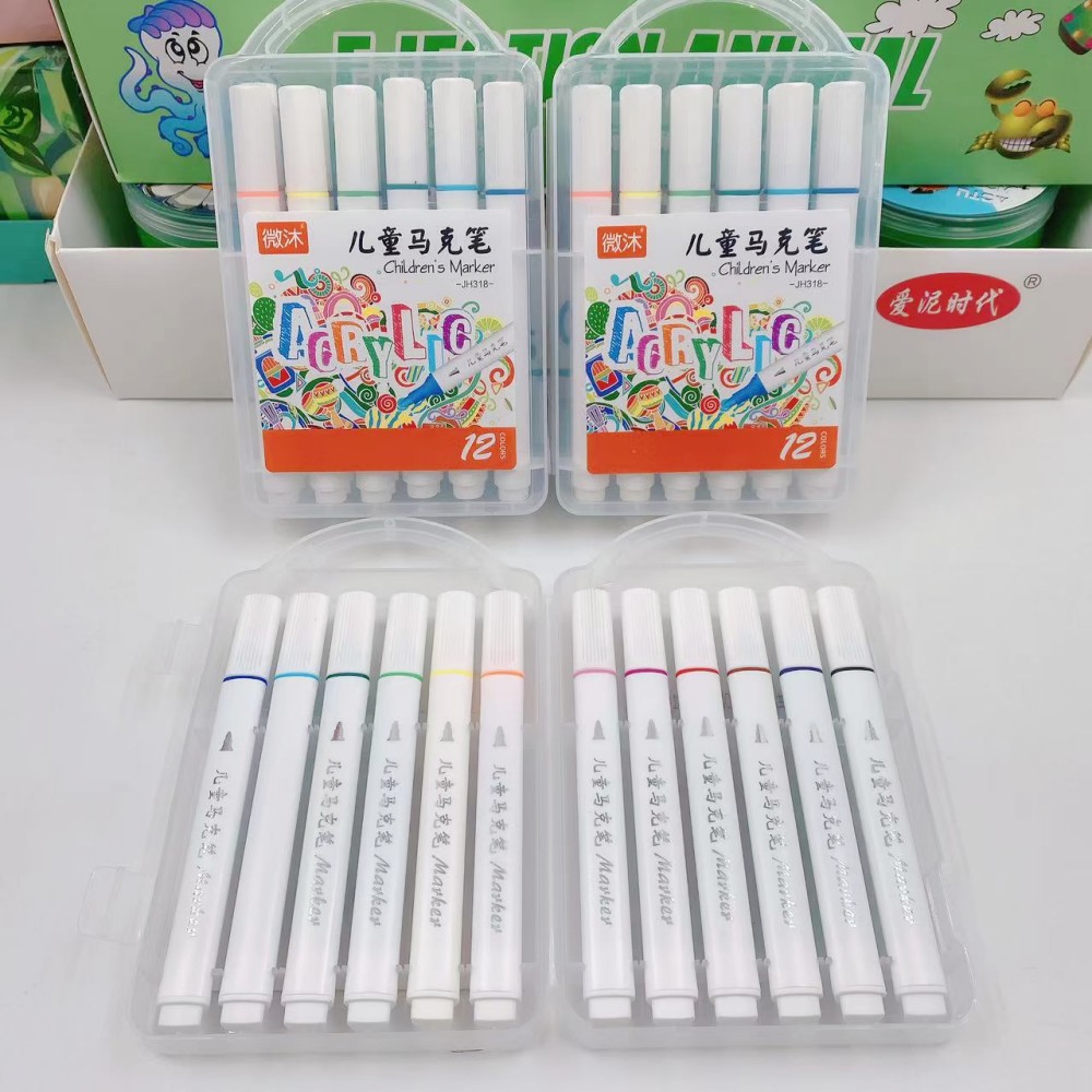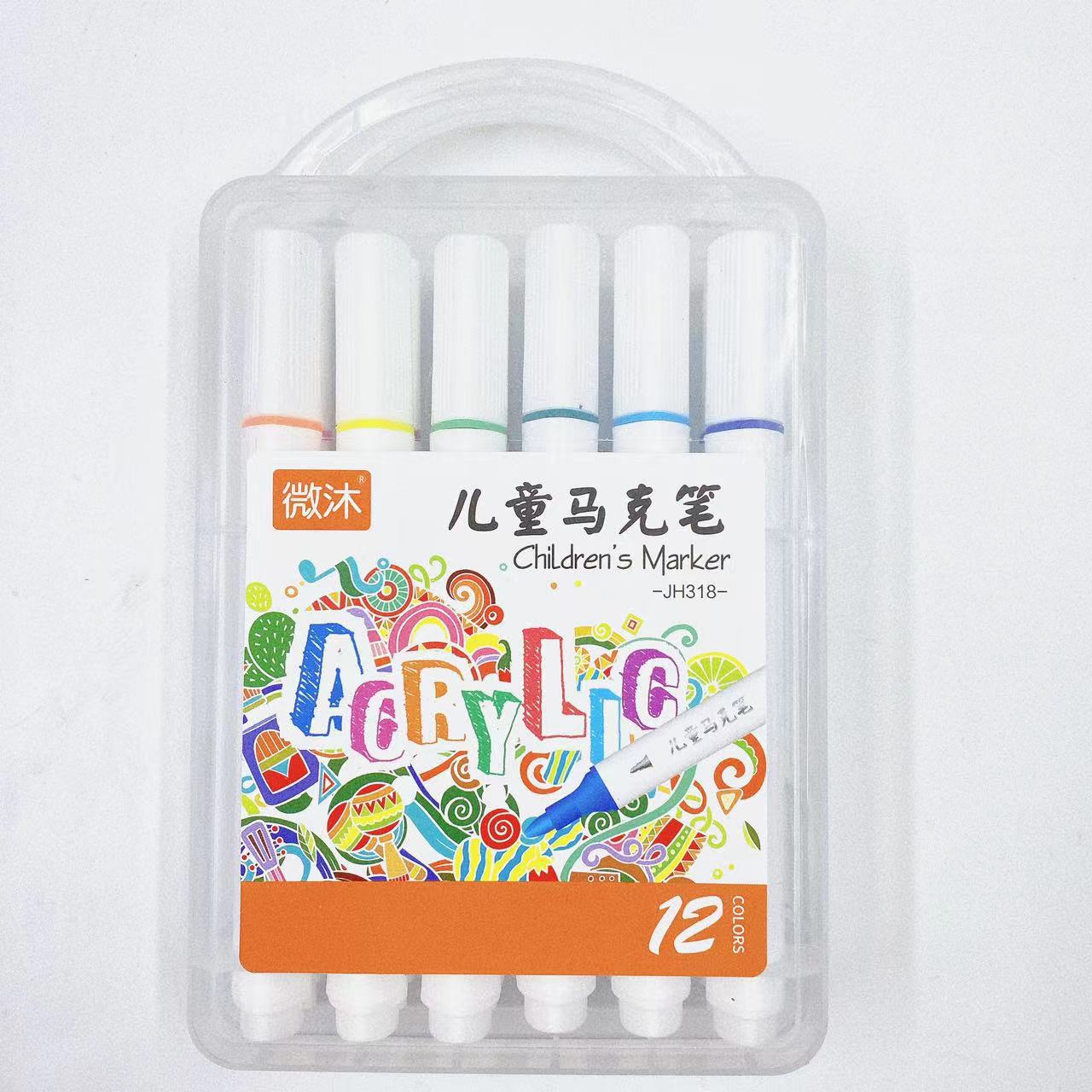 马克笔丙烯可水洗三角杆12色套装美术画画彩色笔软头