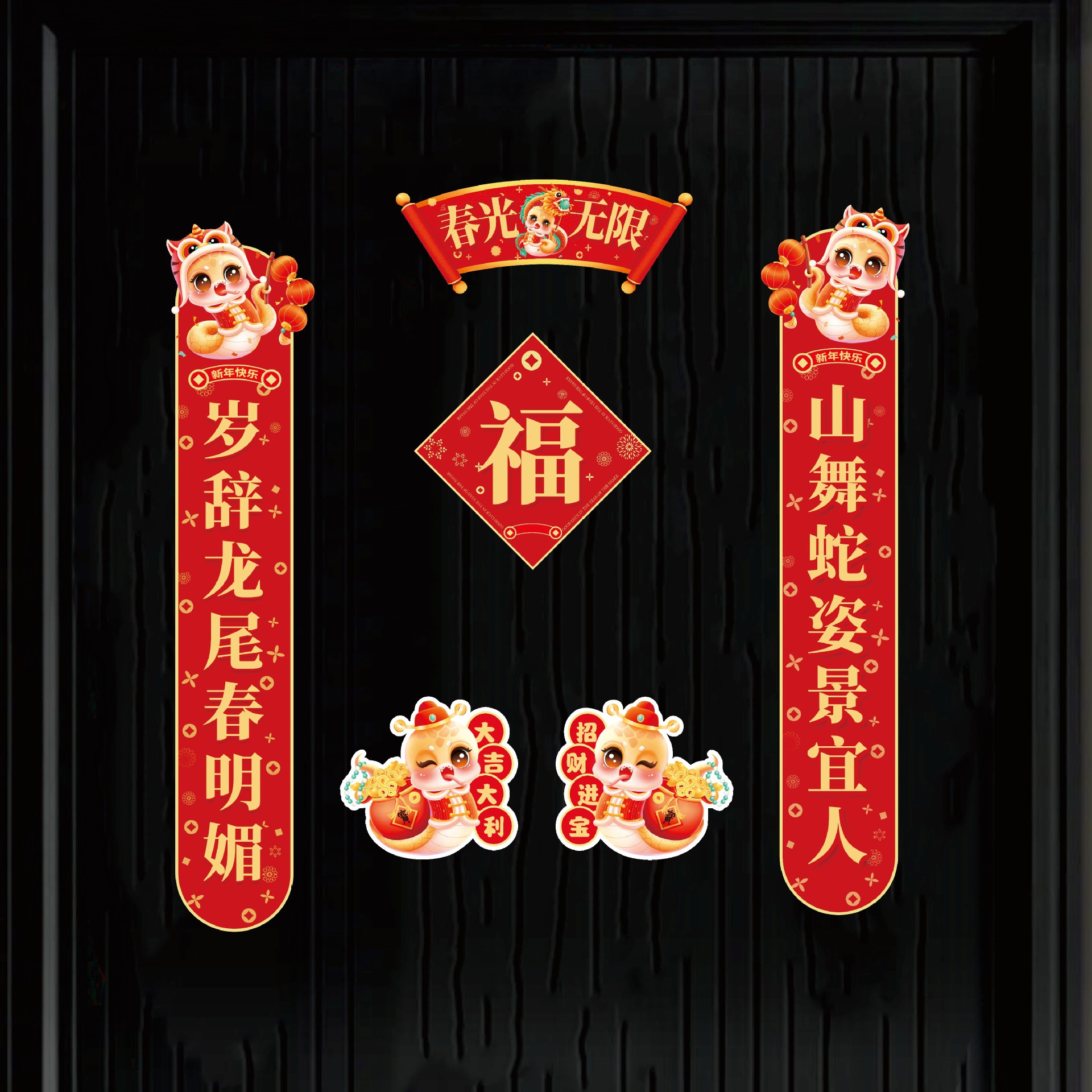2025蛇年磁吸对联新年春联过年春节福字门贴新年装饰过年场景布置