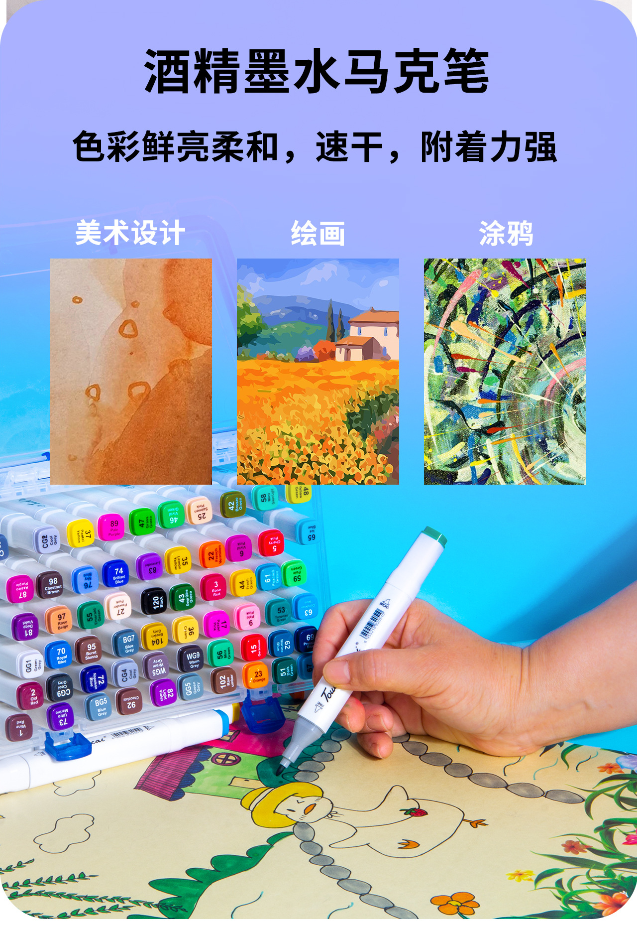 马克笔套装绘画设计动漫美术12-168色装多色双头24色48色马克笔