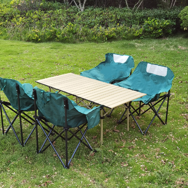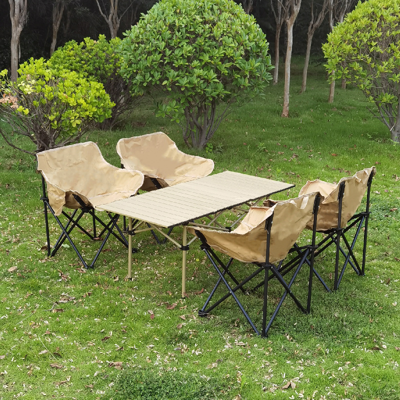 户外轻便桌椅套装月亮便携式靠背休闲多功能懒人野餐凳子露营桌椅
