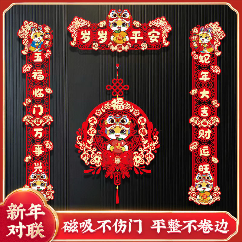 对联磁吸2025新款蛇年春联福字入户门新年装饰套装挂件中国风门联