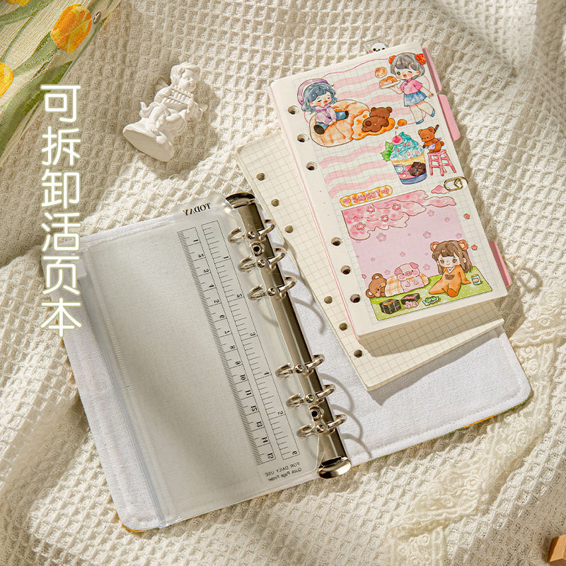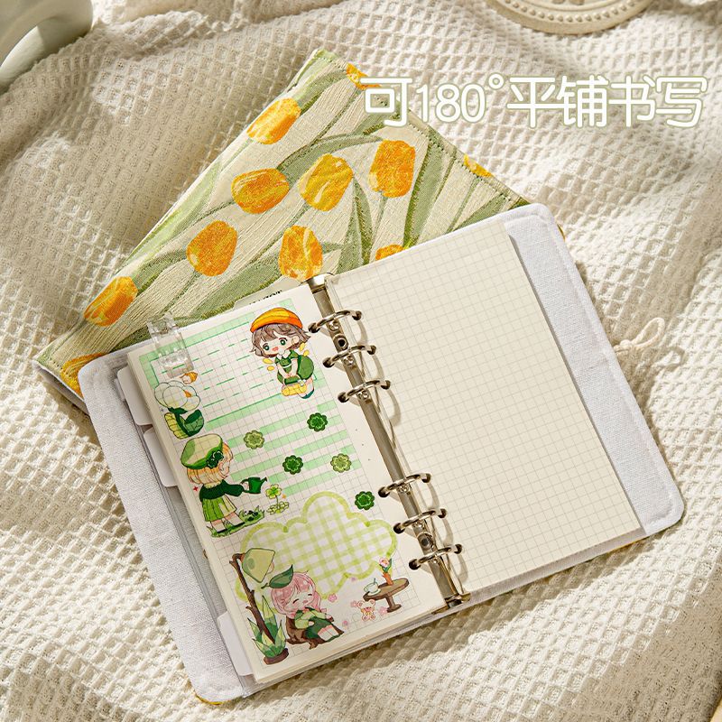 小清新郁金香布艺面棉A5A6活页手账本文艺手工记事本