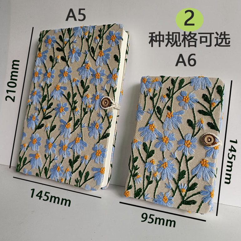 A5布艺刺绣记事本工作记录手账本A6简约随身笔记本空白横线