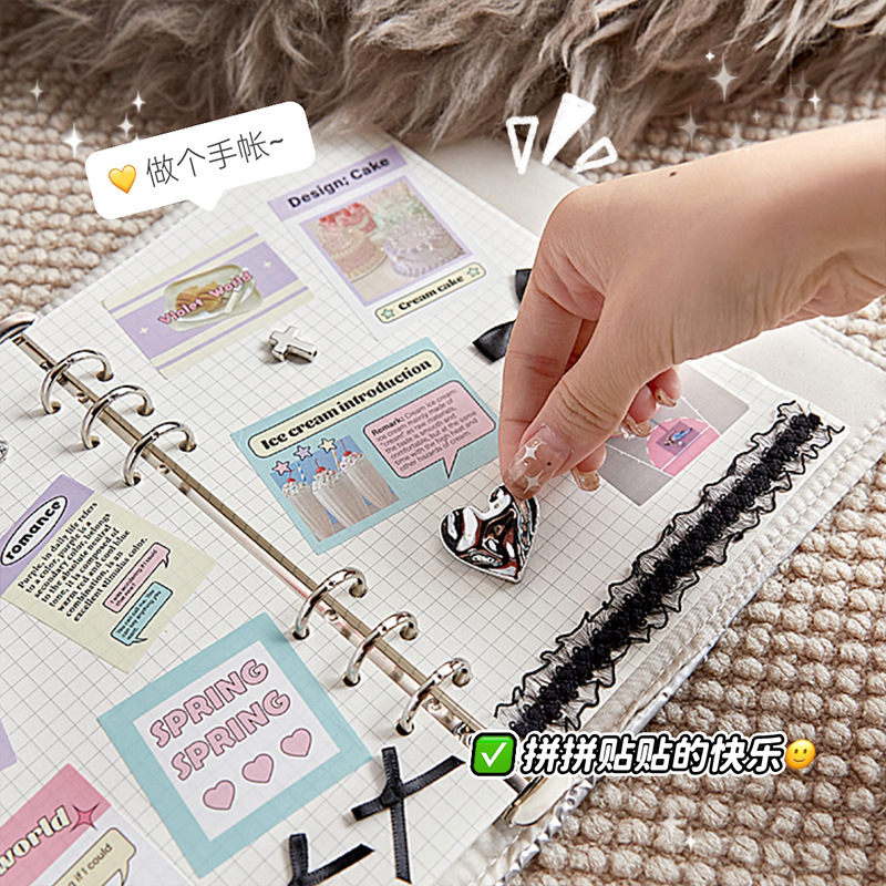 美式风格手账本女生高颜值活页笔记方格本子日程本银色记事本