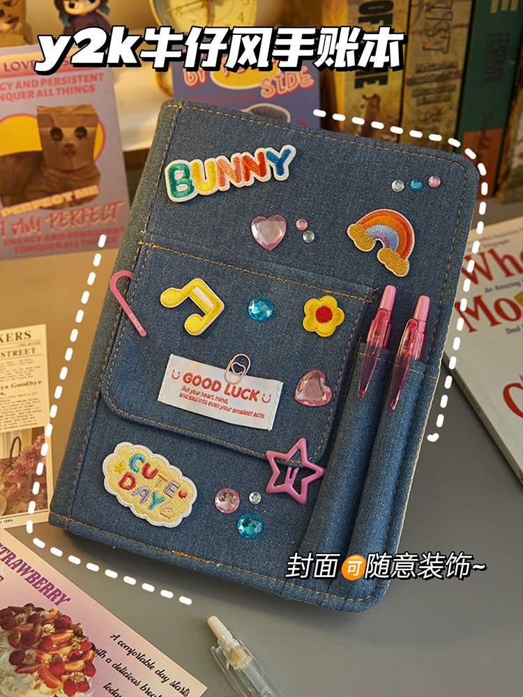 牛仔手账本【浅蓝】+主图同款 贴纸包