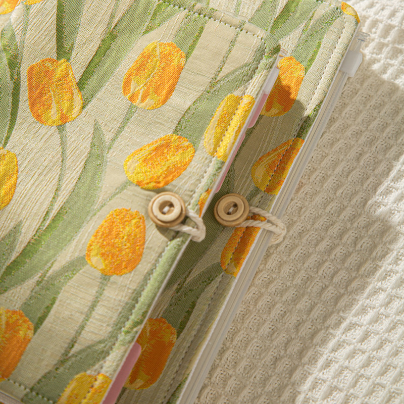 小清新郁金香布艺面棉A6活页手账本文艺手工记事本