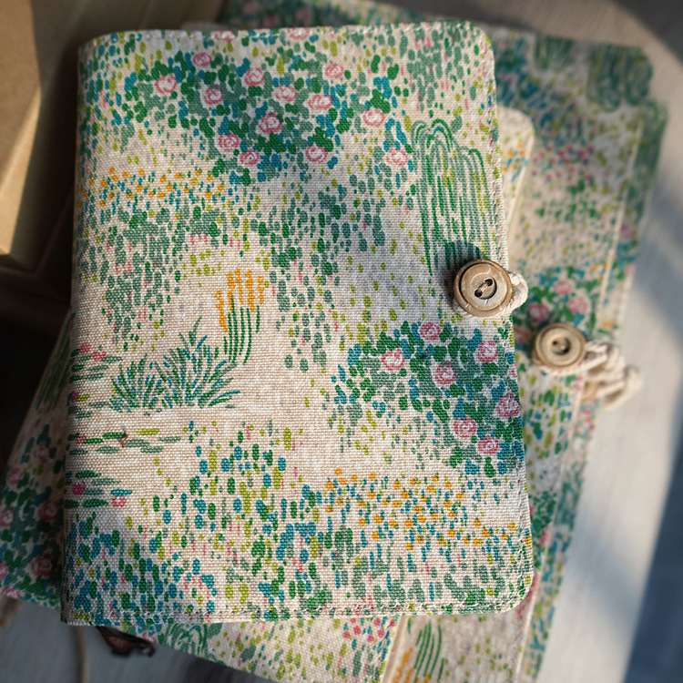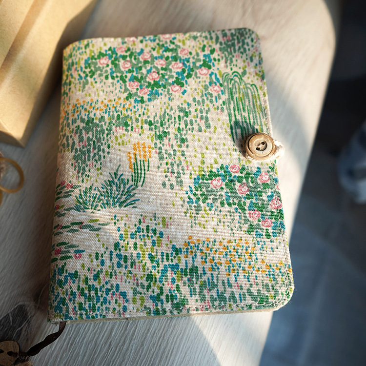 布料布艺面A6活页本文艺手账本子随身记事本山水插画手工