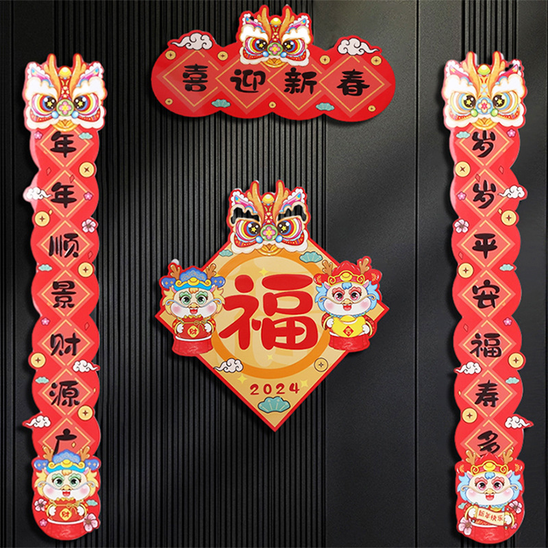 新年对联龙年春联新款春节磁吸入户门装饰过年福字家用门贴