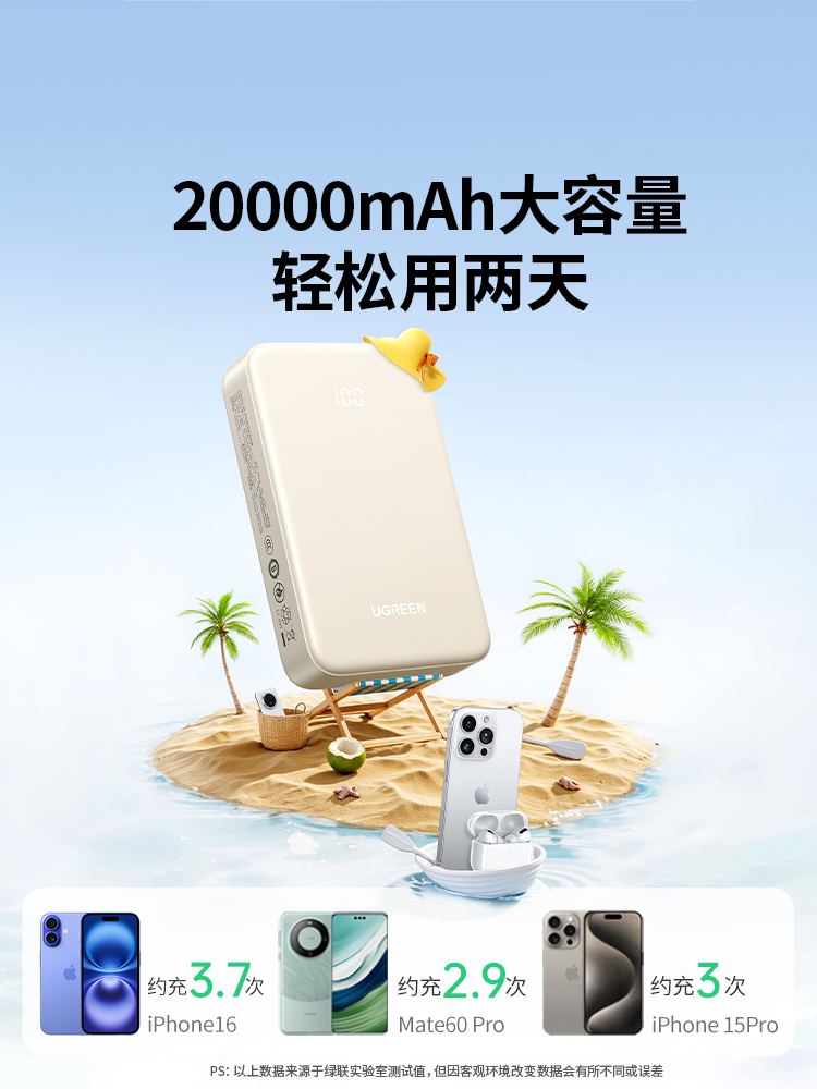 绿联2025新款充电宝20000毫安适用苹果小米超薄大容量快充移动电源