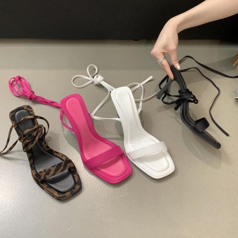 脚腕绑带时装凉鞋夏新款晚晚风露趾高跟鞋交叉绑带罗马鞋女