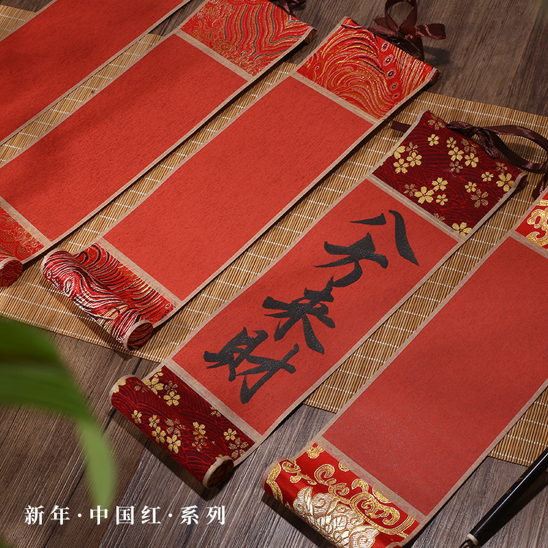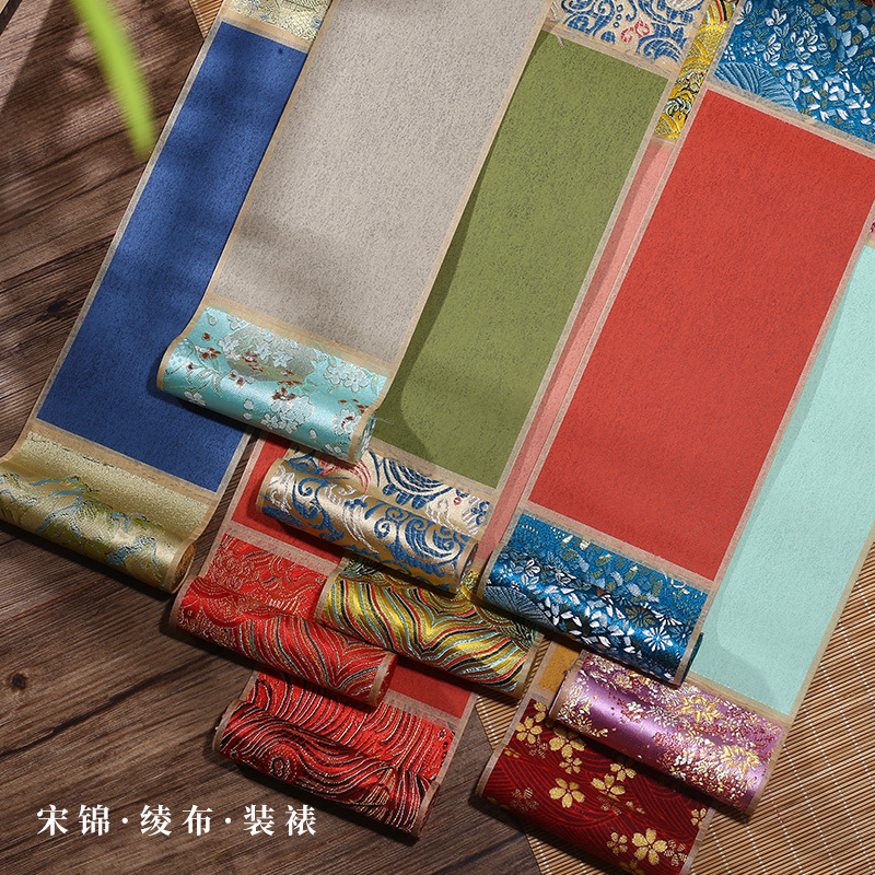 宋锦迷你小卷轴挂画宣纸空白挂轴洒金蜡染半生熟书法创作宣纸
