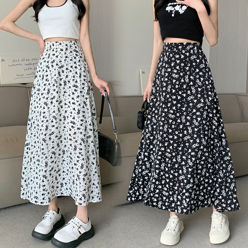 高腰碎花半身裙大摆裙中长款夏季新款时尚百搭雪纺A字裙女潮