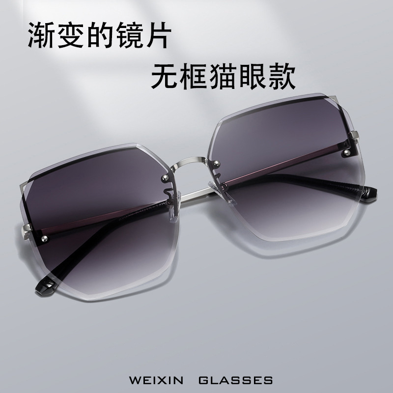 新款女士时尚无框墨镜 舒适显瘦渐变海滩户外防紫外线太阳镜