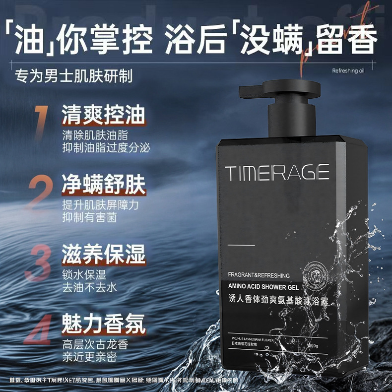 男士沐浴露持久诱人香体留香氨基酸除螨清爽控油正品洗沐套装