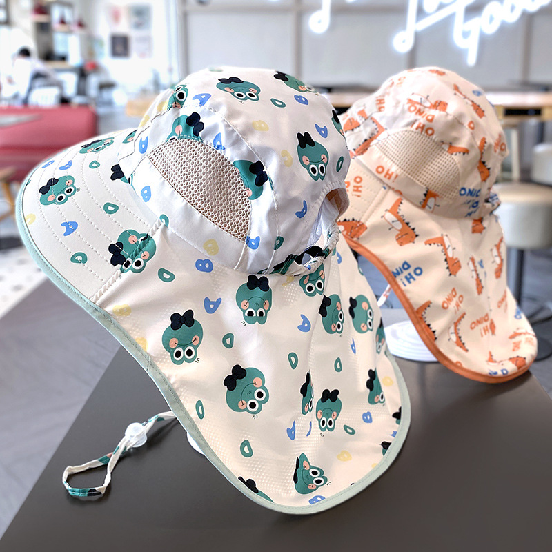 儿童防晒帽子夏季薄款大檐网眼披肩渔夫帽男女宝宝防紫外线太阳帽
