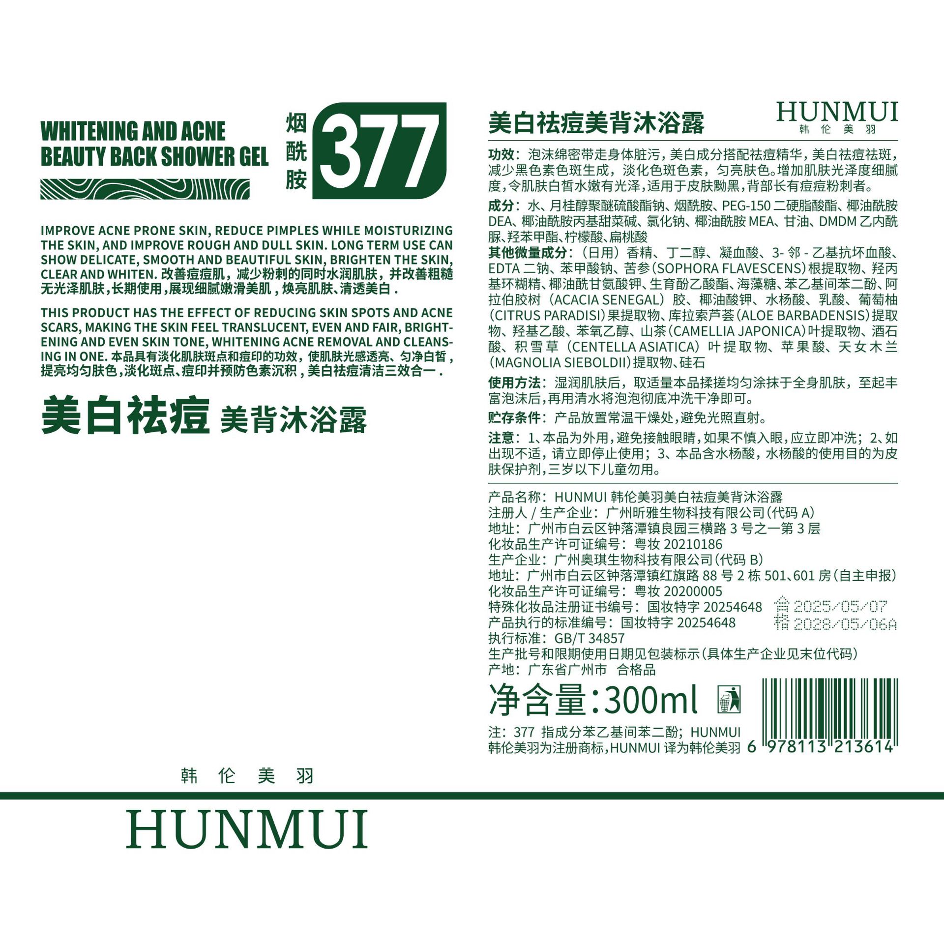 美白祛痘美背沐浴露爆款深层清洁背部去痘377提亮肤色美白沐浴乳