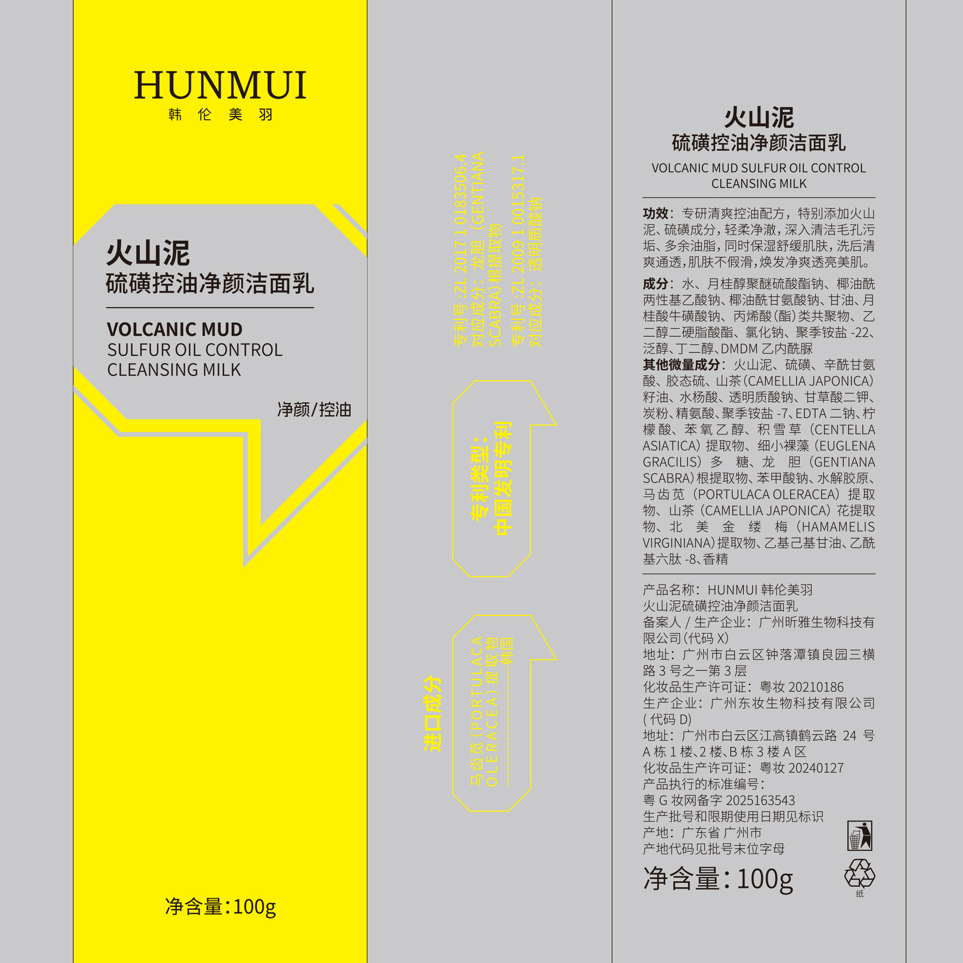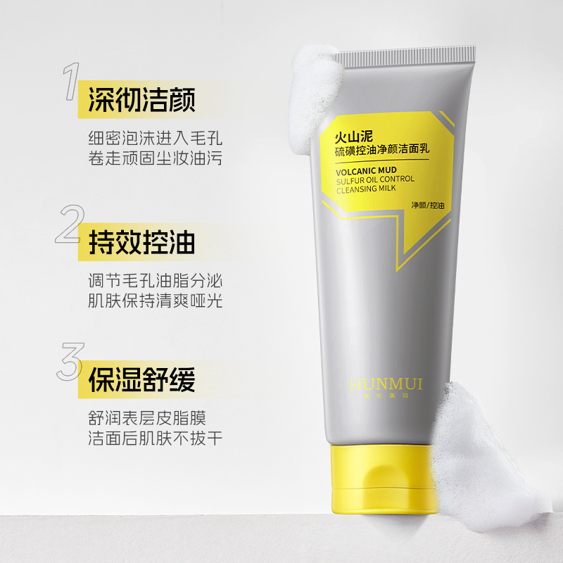 韩伦美羽火山泥硫磺控油净颜洁面乳易冲洗洁净不紧绷洁净洗面奶