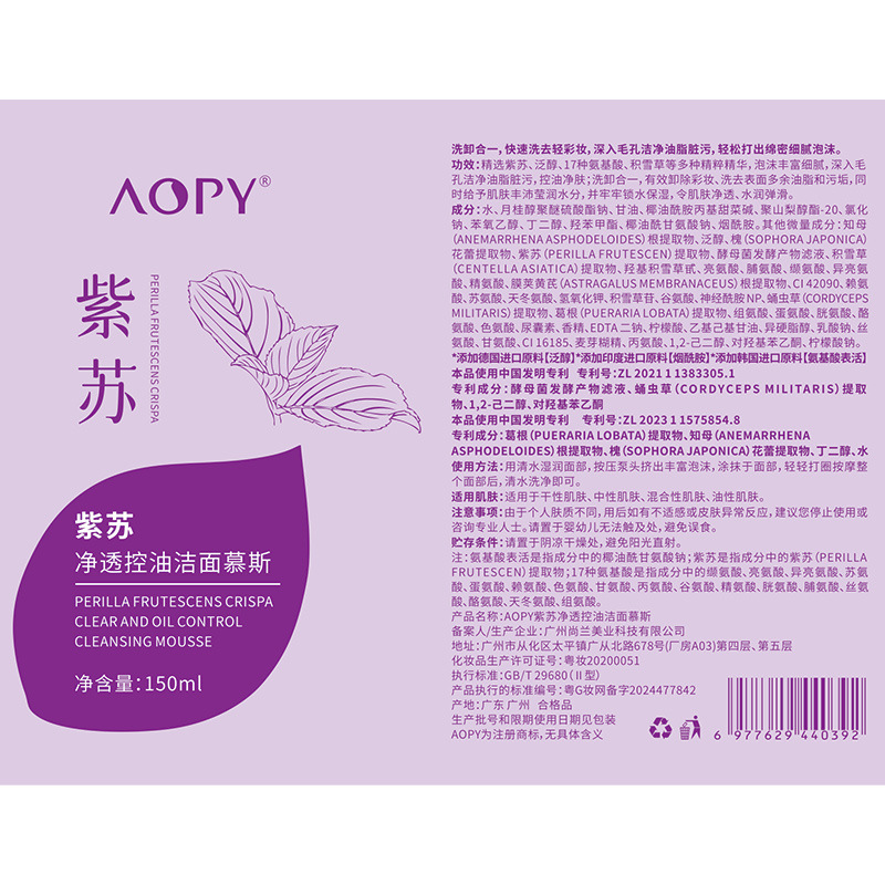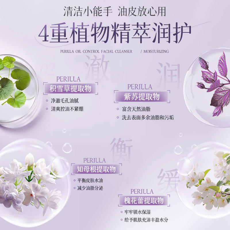 紫苏净透洁面慕斯洗卸合一面奶清洁保湿泡沫细腻水润控油洁面乳