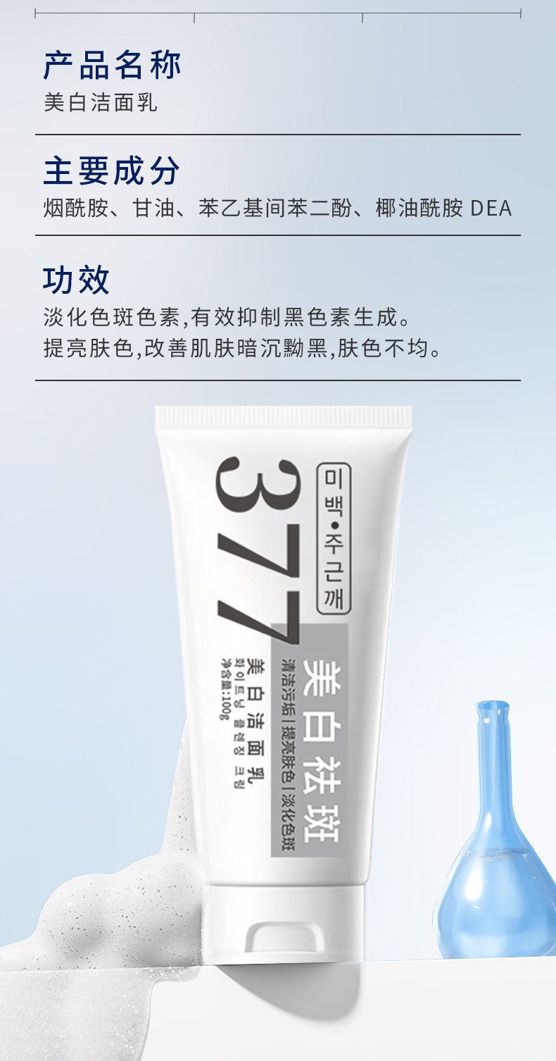 377洗面奶美白祛斑控油去黄去黑深层清洁清爽男生洁面乳洁面产品