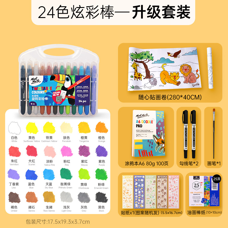 不脏手儿童丝滑蜡笔油画棒幼儿旋转蜡笔彩笔套装24色炫彩棒