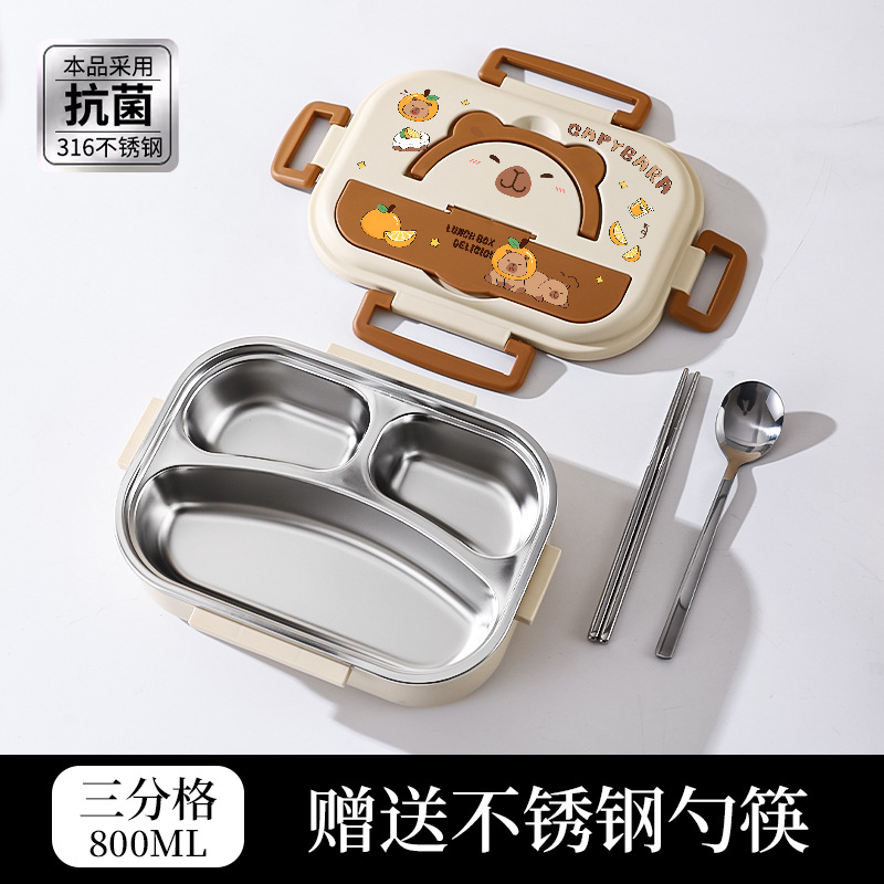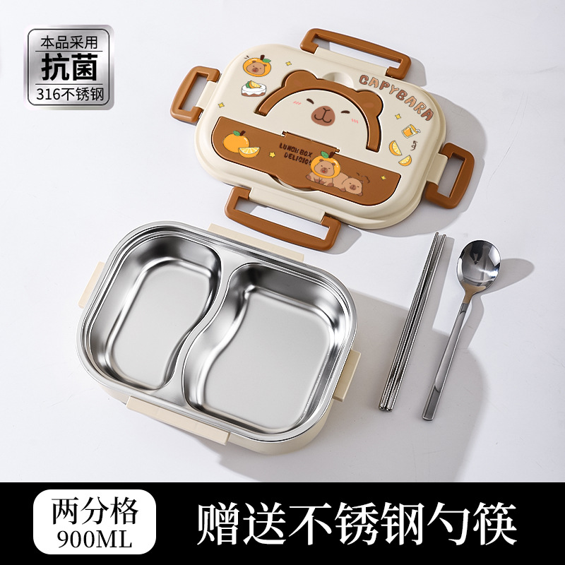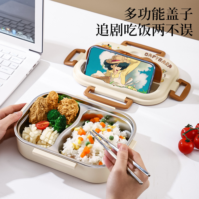 可爱风卡皮巴拉儿童饭盒萌趣可爱304食品级儿童学生食堂便当盒