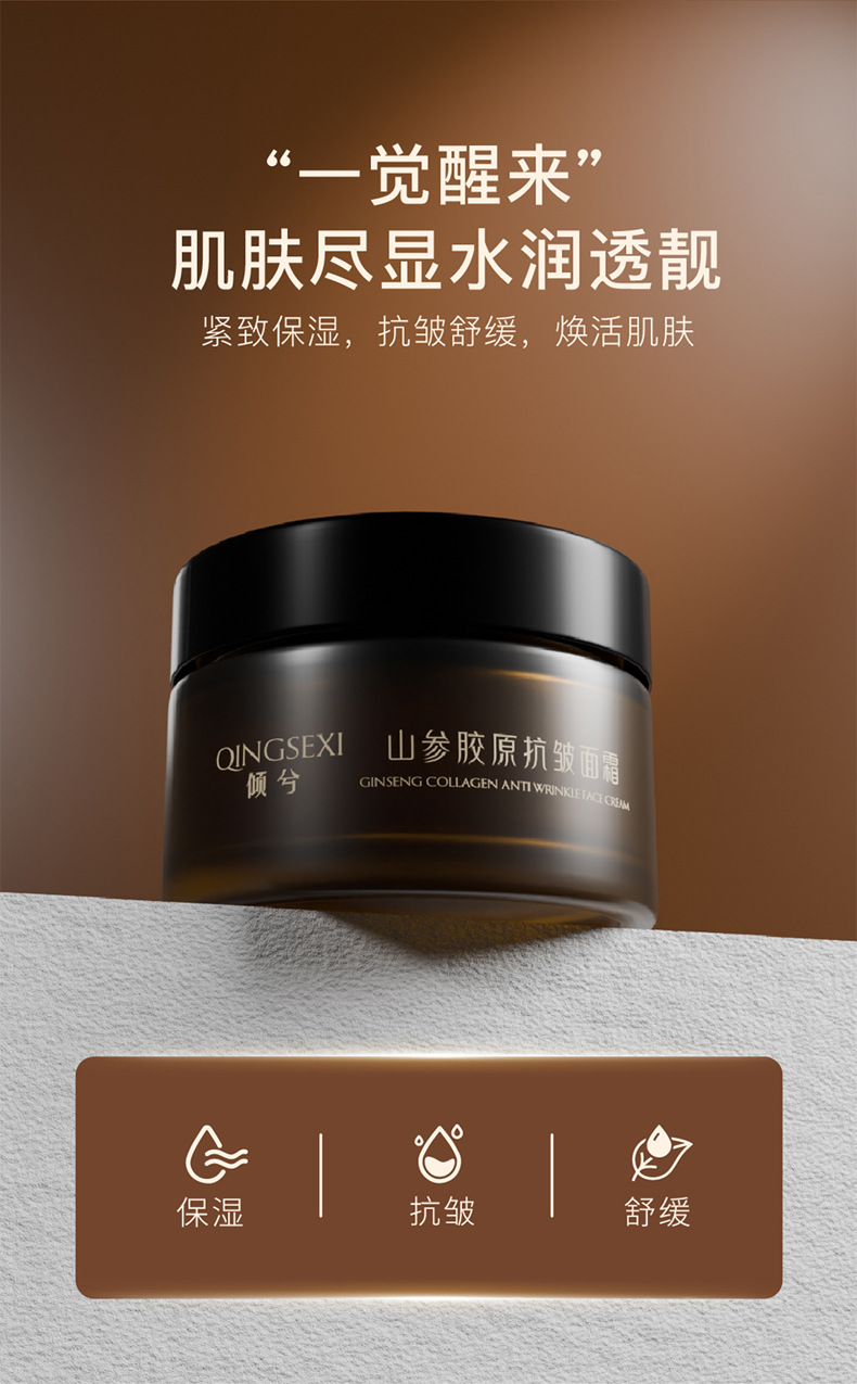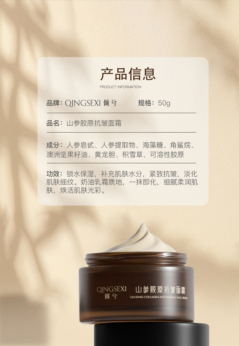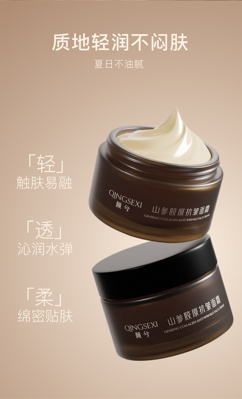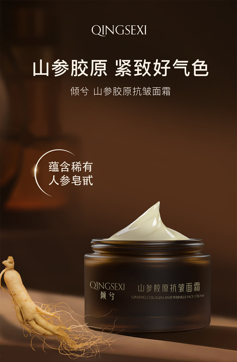 倾兮山参胶原抗皱面霜御时灵参胶原蛋白紧致精华高保湿人参面霜