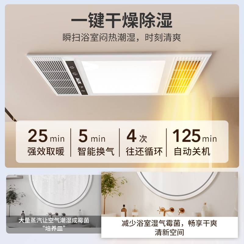 奥克斯浴霸卫生间灯集成吊顶风暖排气扇照明五合一体浴室