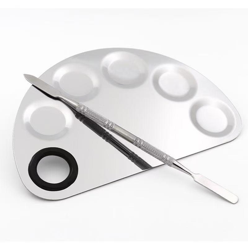 彩妆调色板化妆粉底液遮瑕膏指环调色板不锈钢专业调色盘带调色棒