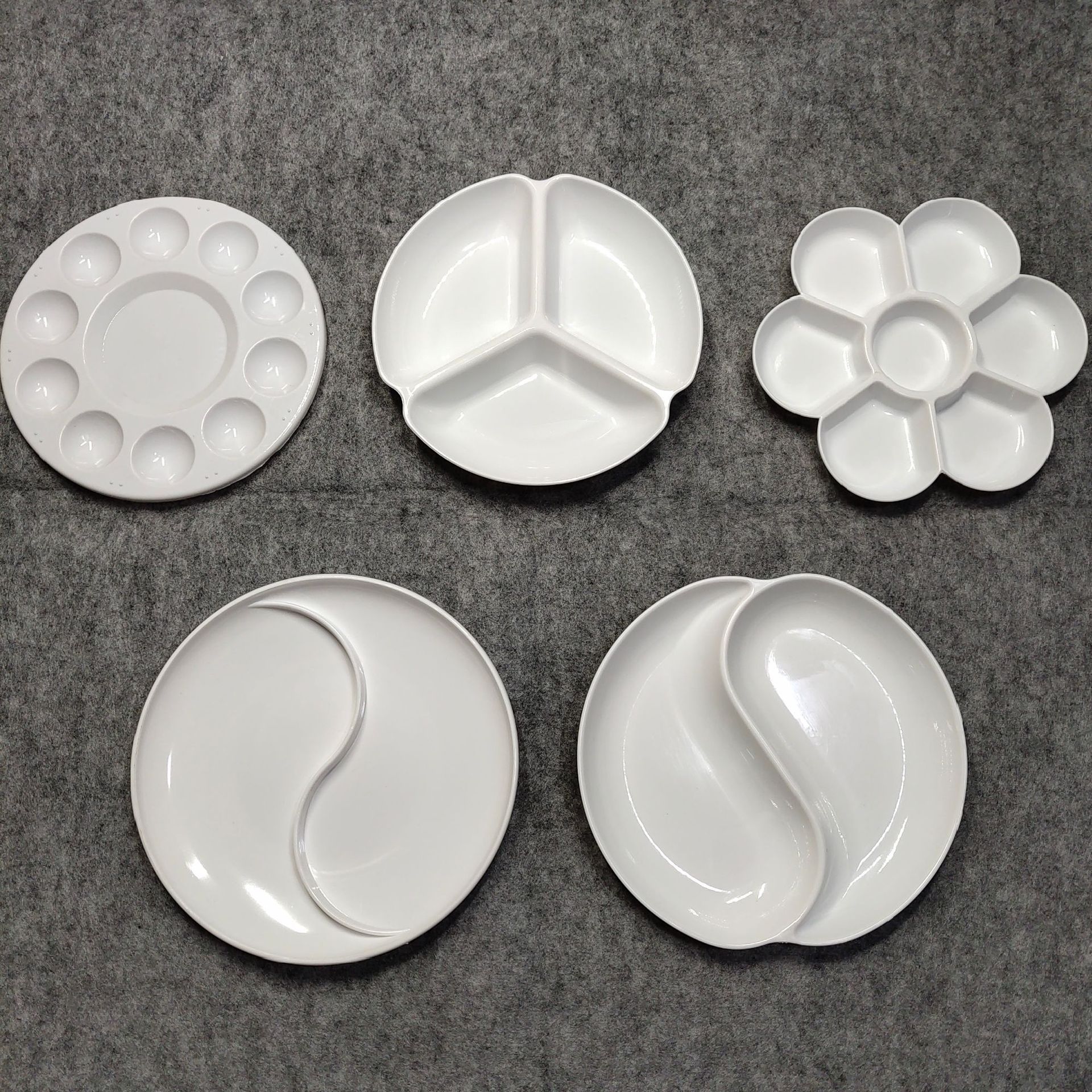 塑料美术调色盘白色梅花太极加厚仿瓷调色板