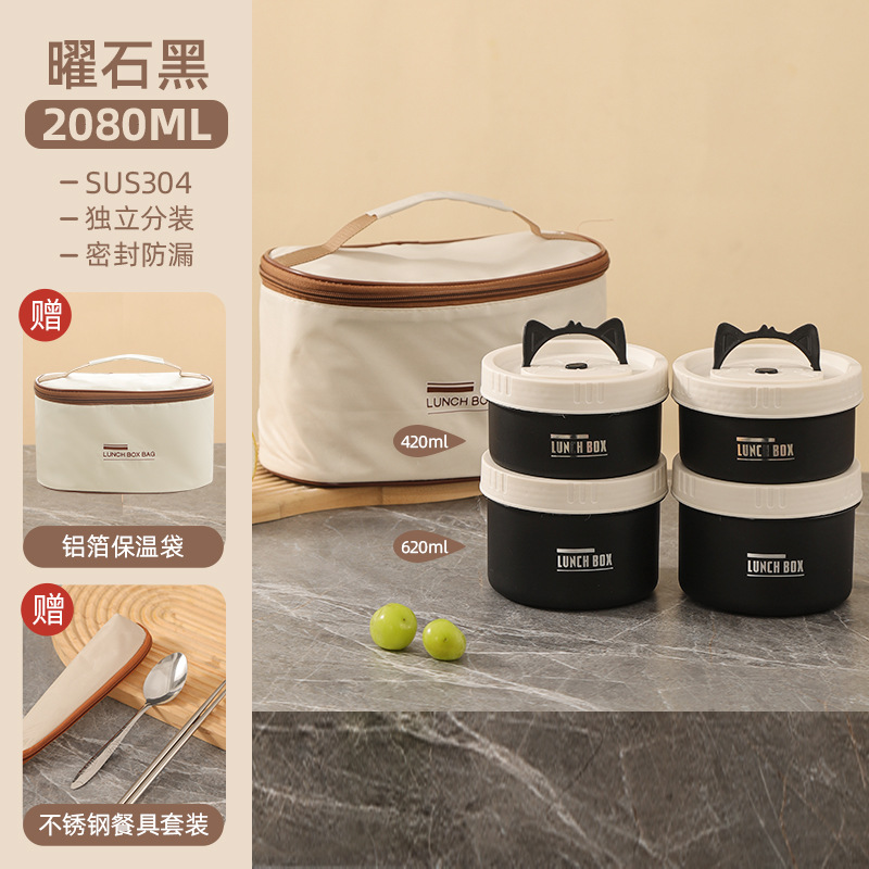 - 410 2080ML黑色保温桶(送餐具+保温袋)