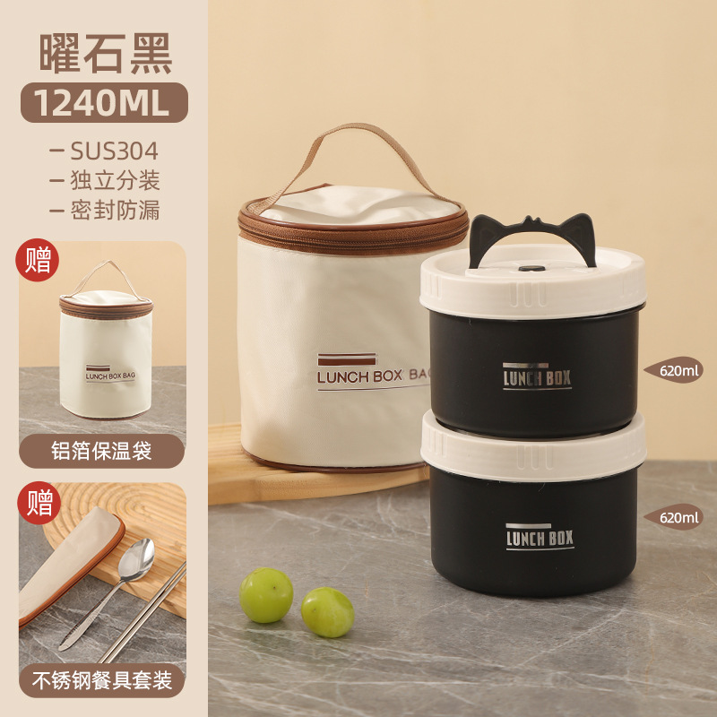 - 1040ML黑色保温桶(送餐具+保温袋)