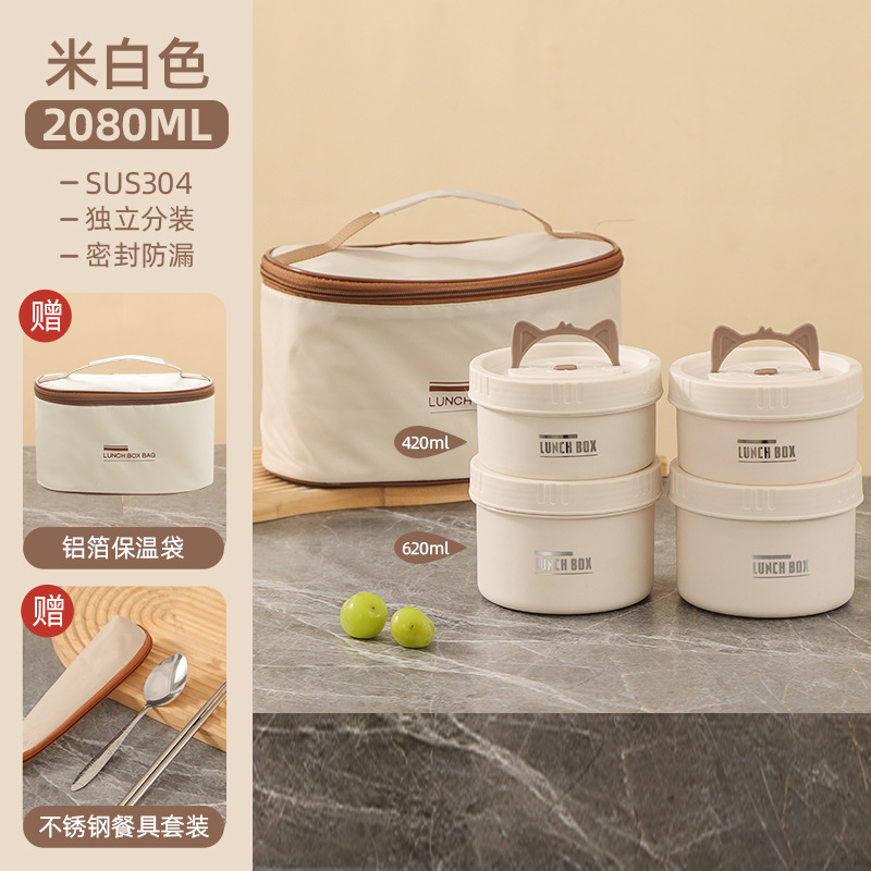 - 410 2080ML米色保温桶(送餐具+保温袋)