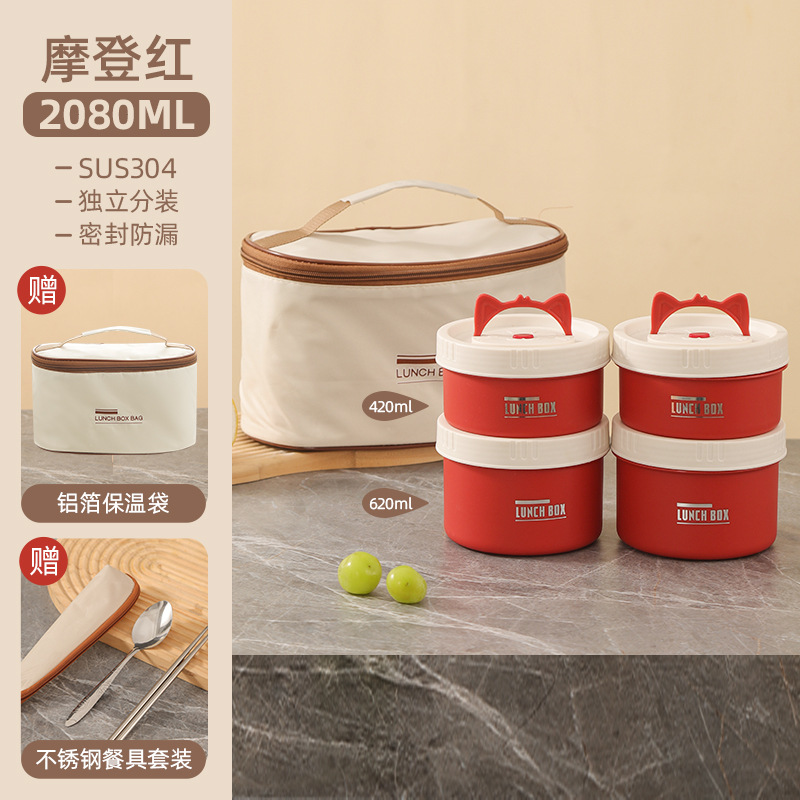 - 410 2080ML红色保温桶(送餐具+保温袋)