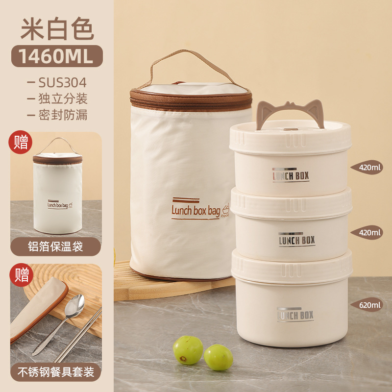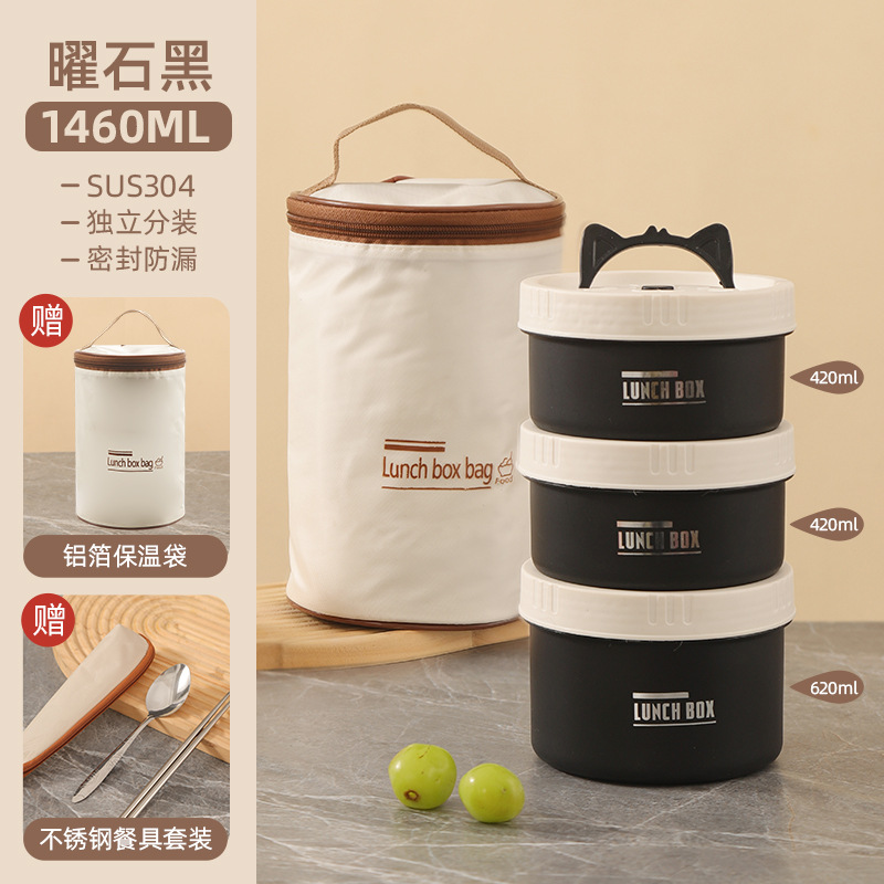 304不锈钢圆形多层保温饭盒学生上班族带饭饭盒 便携密封保温饭盒