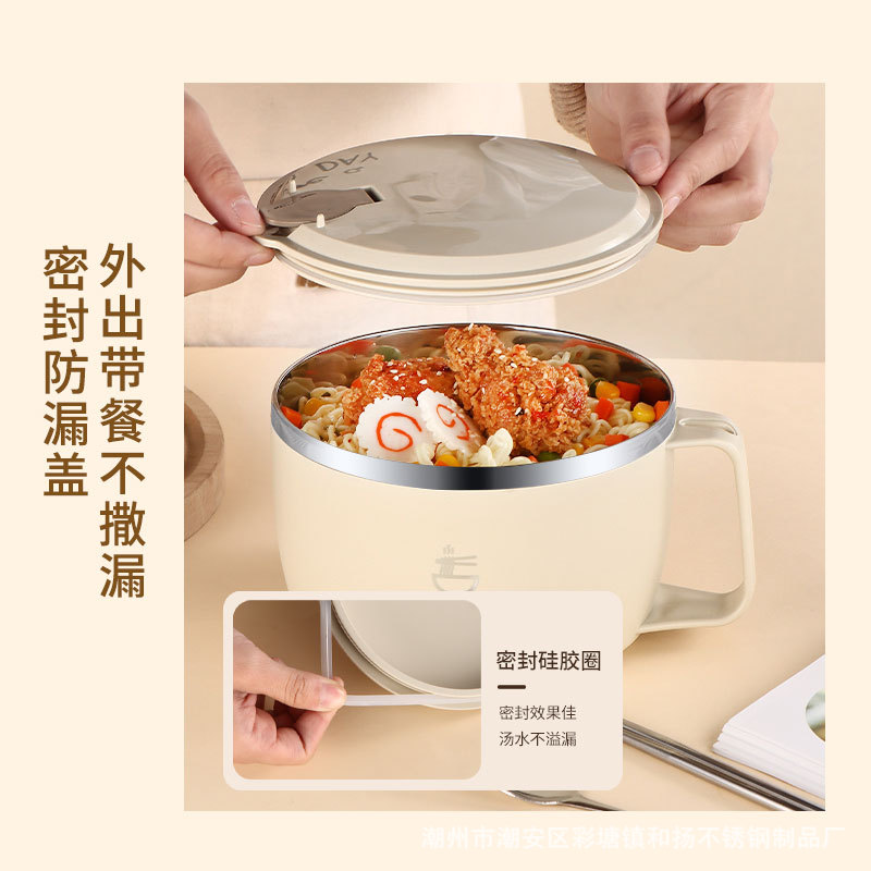 304不锈钢泡面碗带盖保温密封便携学生快餐杯宿舍上班族日式饭盒