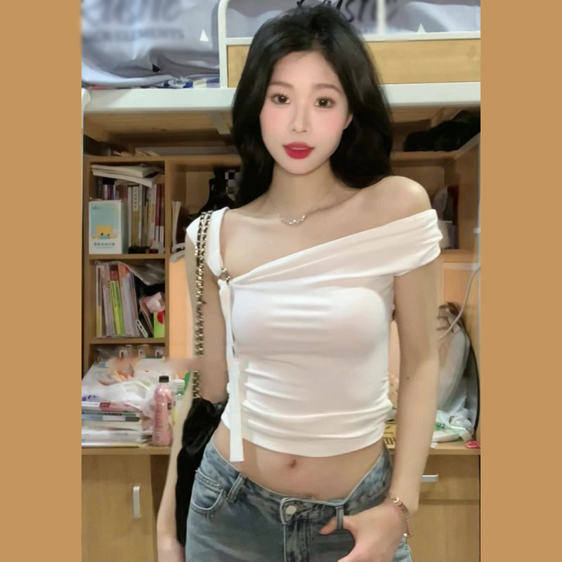 锁骨性感辣妹t恤女2025新款设计感小众纯欲风短款露肩一字肩上衣