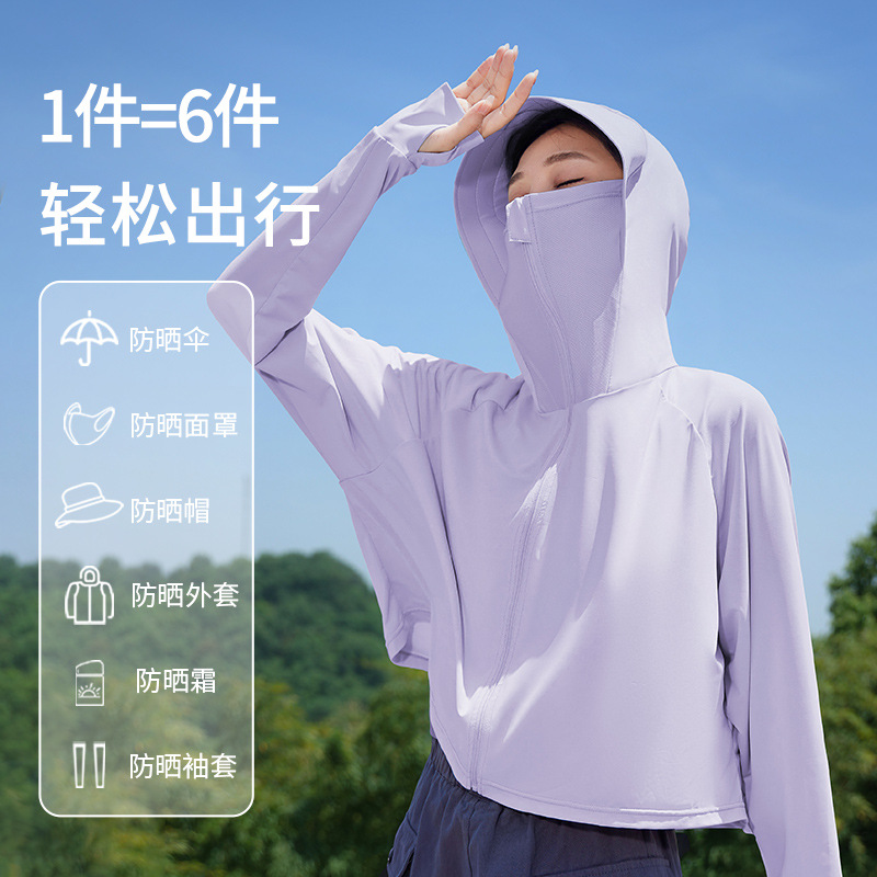 防晒衣女防紫外线夏遮阳透气披肩超薄连帽宽松冰丝户外防晒服