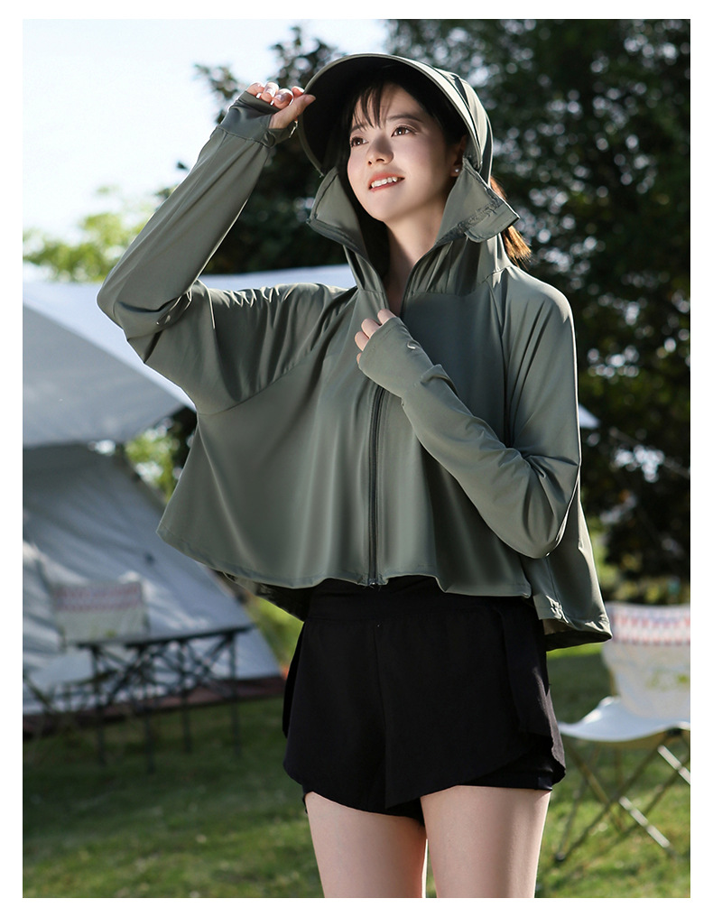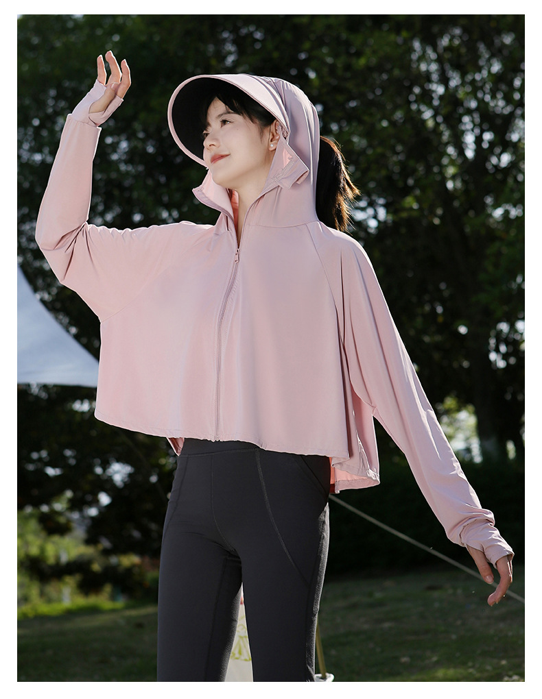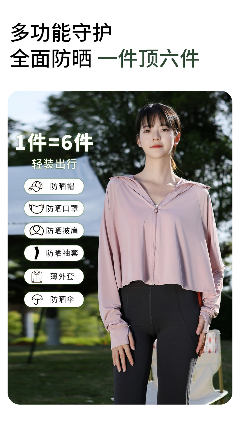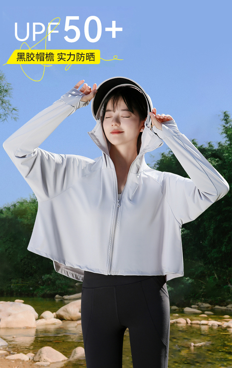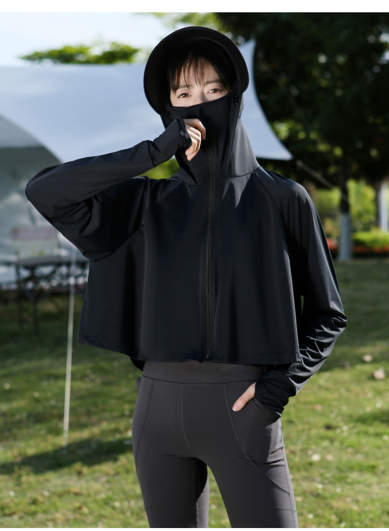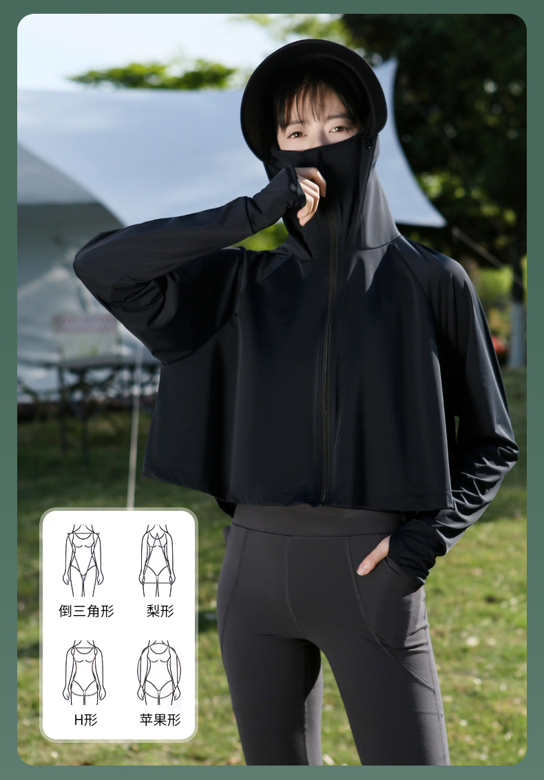 夏季防晒上衣女防紫外线户外黑胶披肩冰钛原纱冰丝凉感防晒服外套