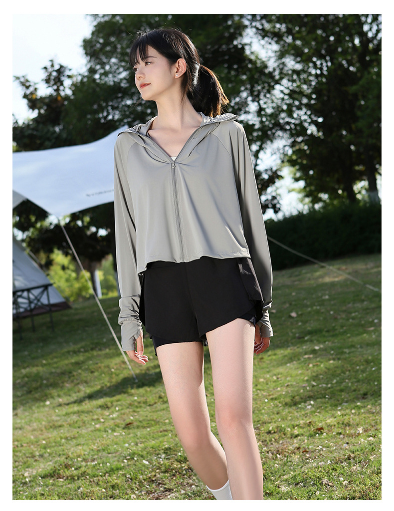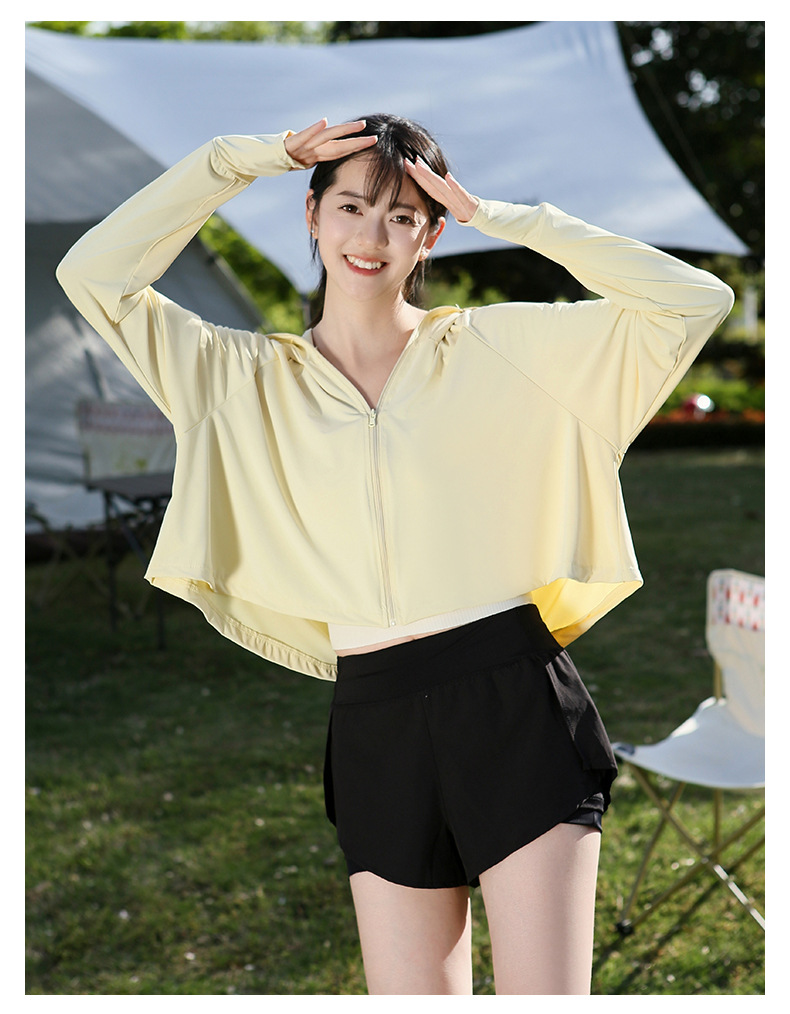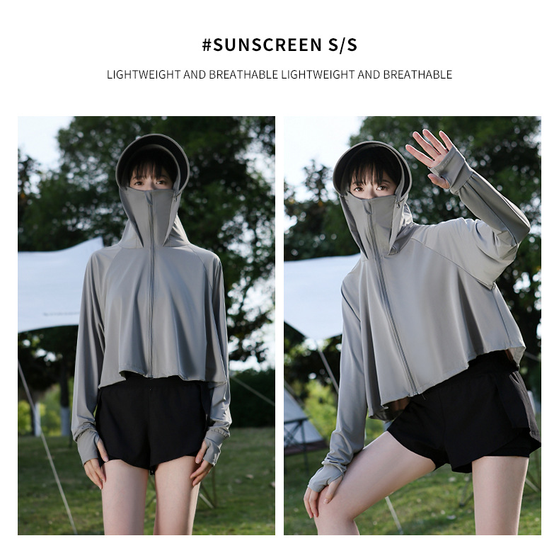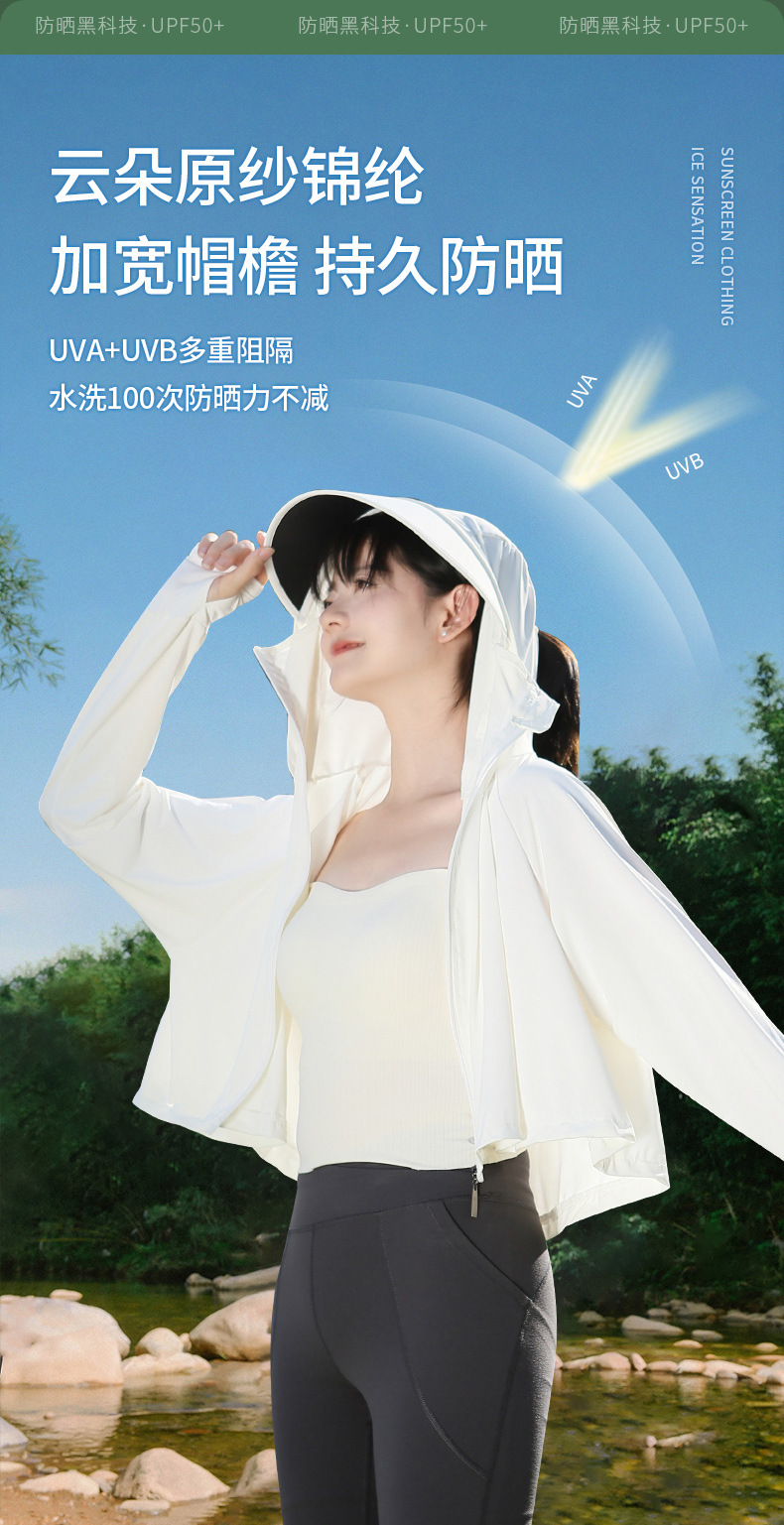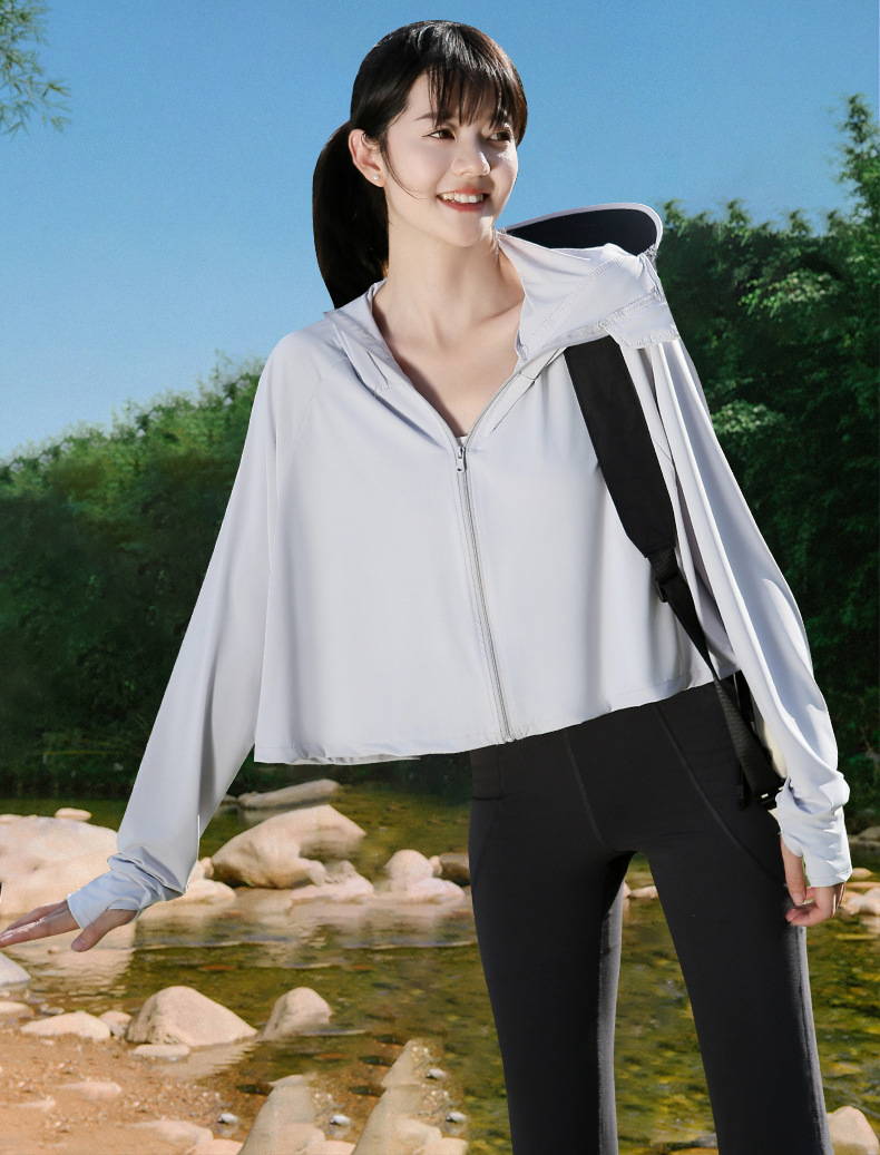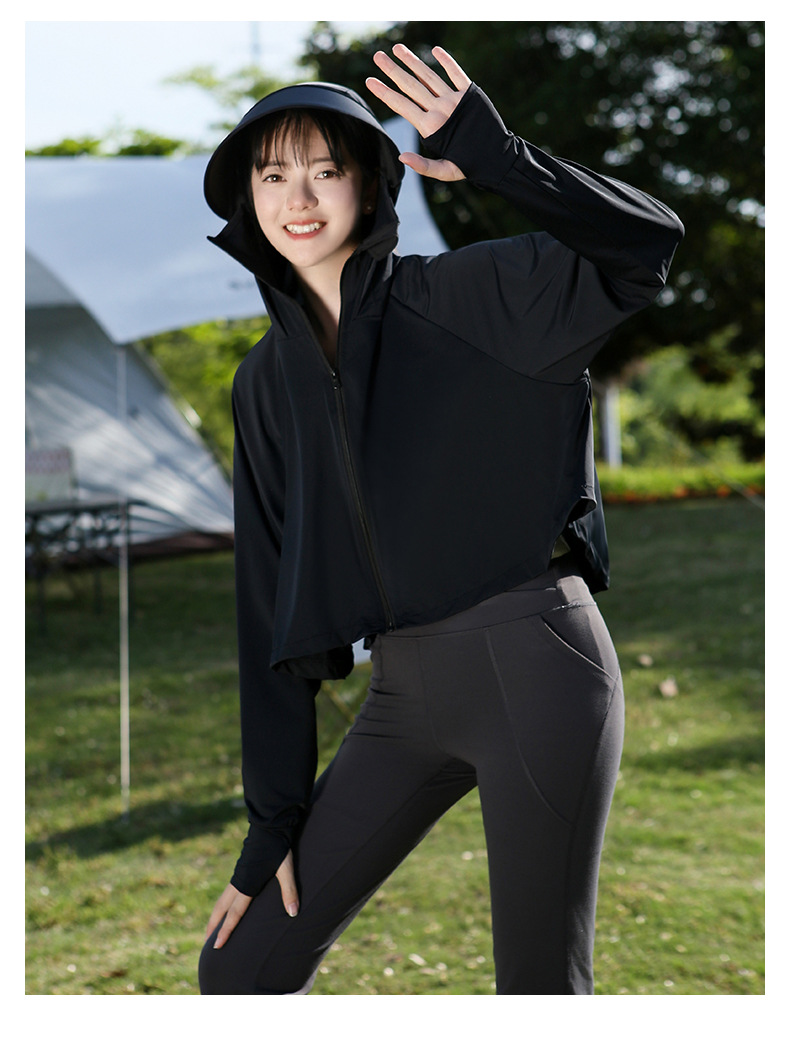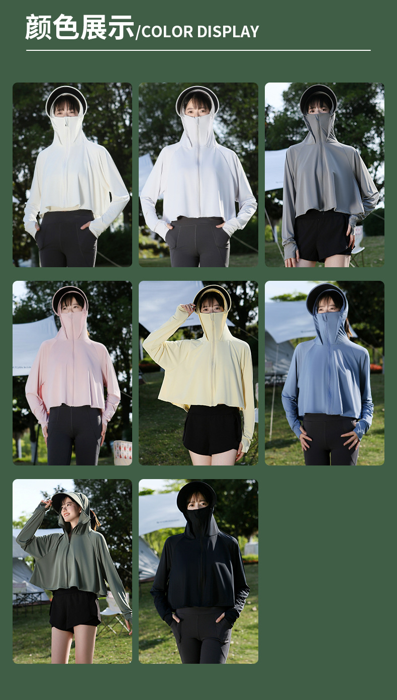 夏季防晒上衣女防紫外线户外黑胶披肩冰钛原纱冰丝凉感防晒服外套